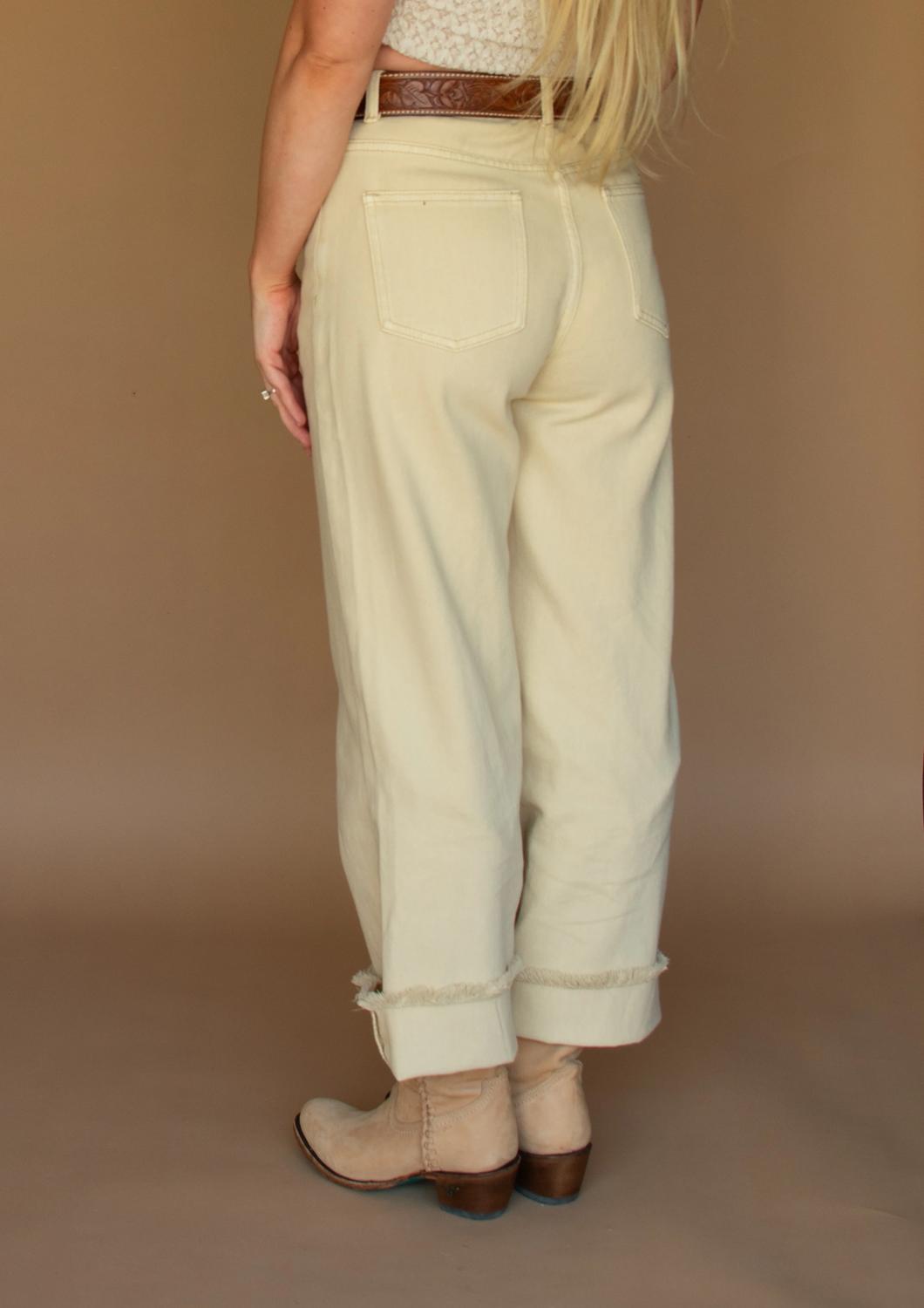 Pair these wide leg jeans with mules, slides or your favorite strappy sandals. Introducing the Langley Denim Jean by By Together, designed for a seamless transition between seasons in a chic cream hue. These women’s wide leg jeans showcase a relaxed fit and a high-rise waist, delivering an effortlessly stylish silhouette. Complete with a solid pattern and practical pockets, these jeans are secured with a button closure. Perfect for streetwear-inspired looks, they are an ideal choice for a spring housewarming event.