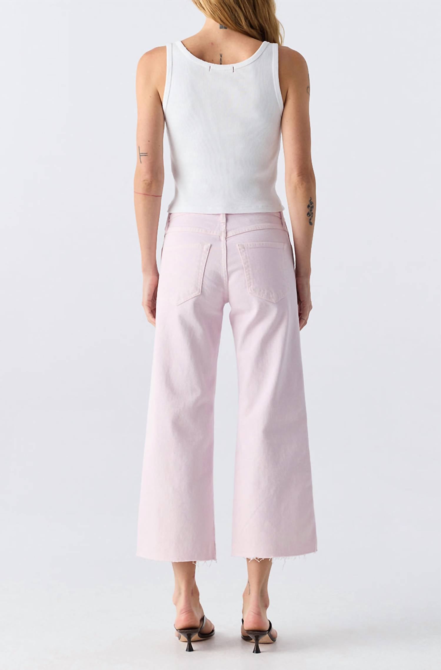 A flattering silhouette that's suprisingly versatile. Elevate your denim collection with the AMO Marjorie Jean in Flush, expertly crafted for a modern, relaxed fit. These women's jeans feature a mid-rise, wide-leg silhouette with a cropped raw hem, perfect for showing off your favorite shoes. Made from a premium blend of 98% cotton and 2% elastane, they provide comfortable stretch and a versatile light wash. Closure is a classic zip fly, and they're designed for effortless machine wash care. Model Sarah wears a size 25 and stands at 5'9.5", with an inseam of 26", a front rise of 10.25", a back rise of 14.75", and a leg opening of 22.5".