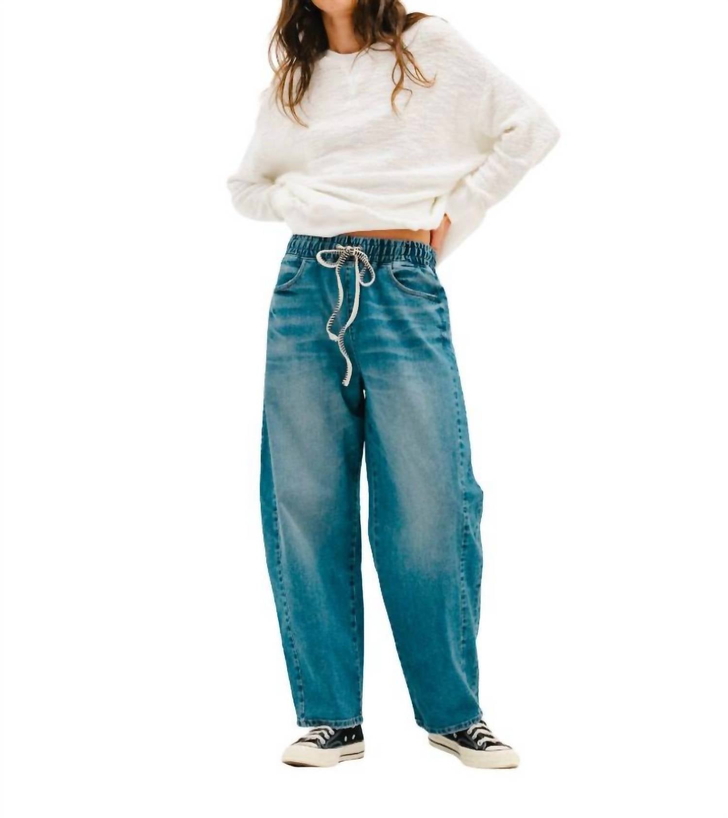 A flattering silhouette that's suprisingly versatile. Unveil your off-duty style with ASKK NY's Cancun Pant in Clean Venice, a perfect fusion of comfort and sophistication. These women's pants feature a high-rise, wide-leg silhouette crafted from 8 oz Japanese stretch denim, offering a relaxed fit with a solid pattern. Made from 98% cotton and 2% polyurethane, these pants incorporate an elastic waist with a rope tie and a chic button closure. Made in Los Angeles, they boast a 13" rise, 28" inseam, and 19" leg opening, and are easy to care for with machine wash instructions. Ideal for travel, long weekends, or laid-back days, these pants bring a touch of 90s fashion into your wardrobe.