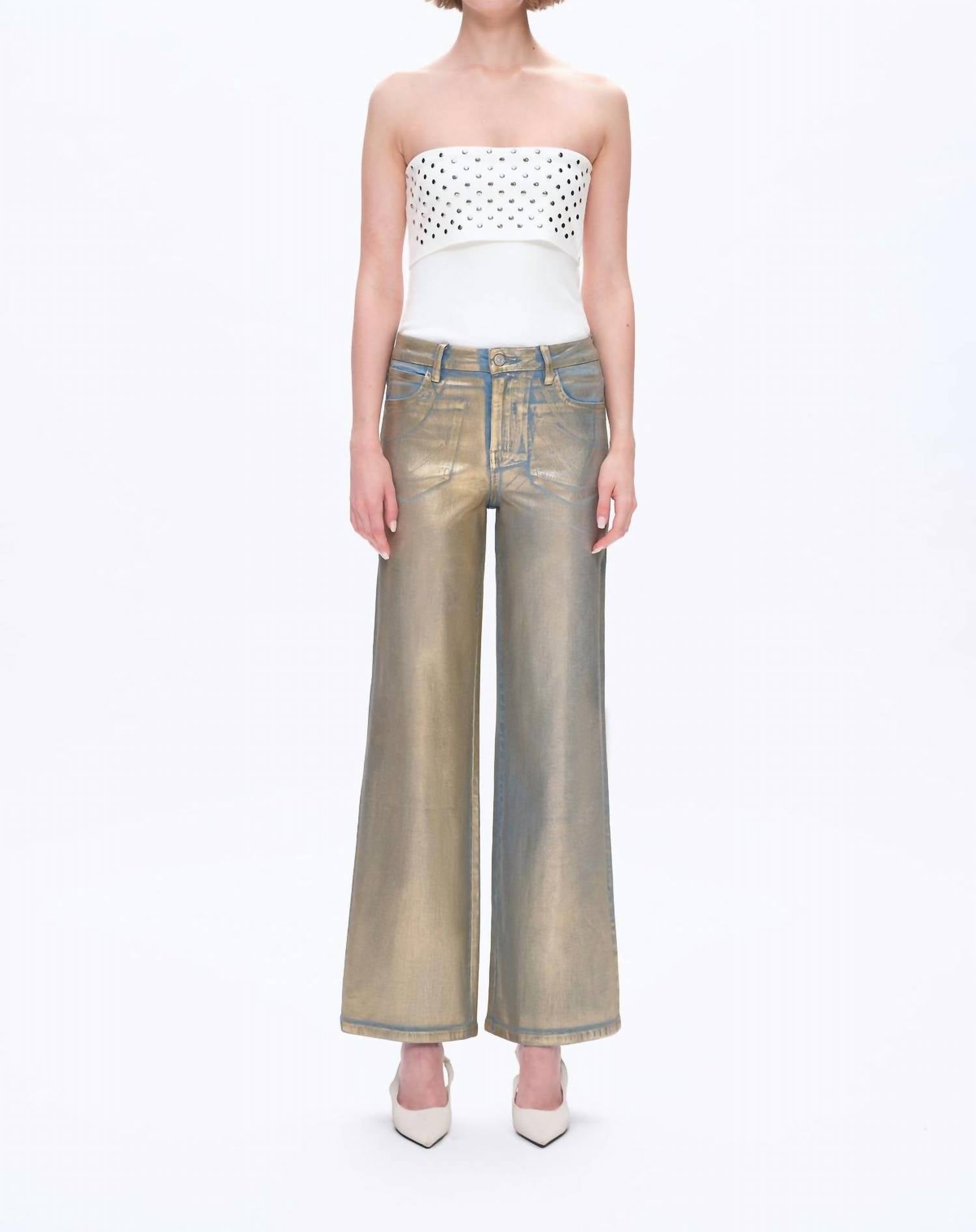 Bayeas - Metallic High Rise Wide Leg Jeans