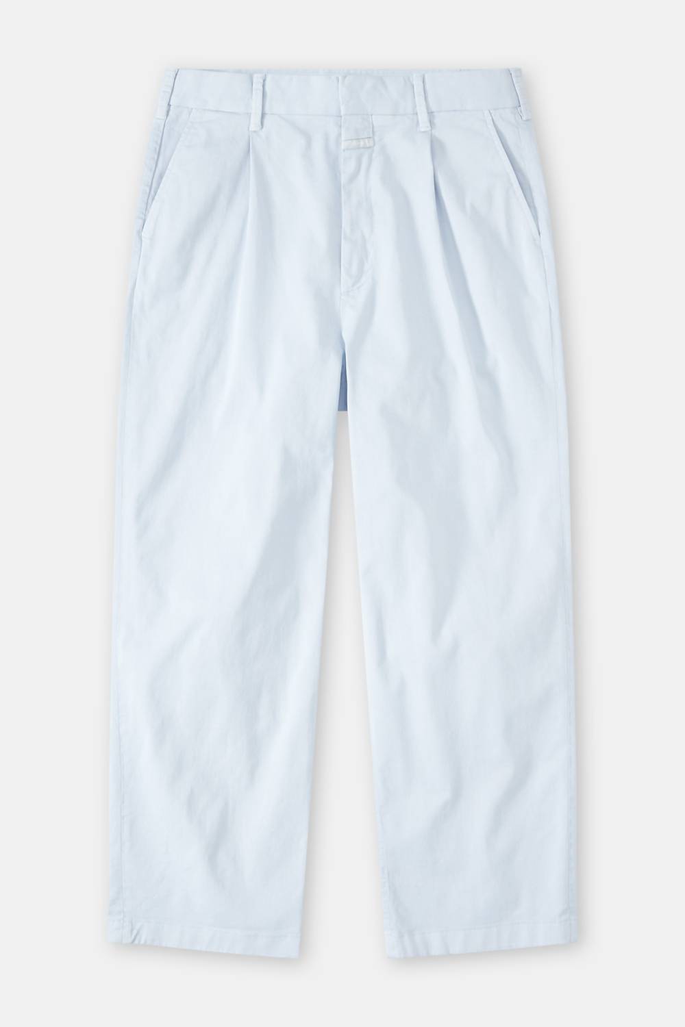Pair these wide leg jeans with mules, slides or your favorite strappy sandals. Introducing the Blomberg Wide Leg Pants by CLOSED, crafted from Italian cotton twill for a firm feel and a worn-in texture. These horizon blue pants feature a high waist, relaxed leg, and wide fit, complete with side and back pockets. Composition: 98% organic cotton, 2% elastane. Made in Turkey with a zip closure and designed for easy care with machine wash and tumble dry. Measurements for size 32 include an inner leg length of approximately 72 cm (28.3 inches), a front rise of approximately 33 cm (12.99 inches), and a leg opening of approximately 22.5 cm (8.86 inches). Model height: 1.86 m (6'1"), wearing size 32/32.