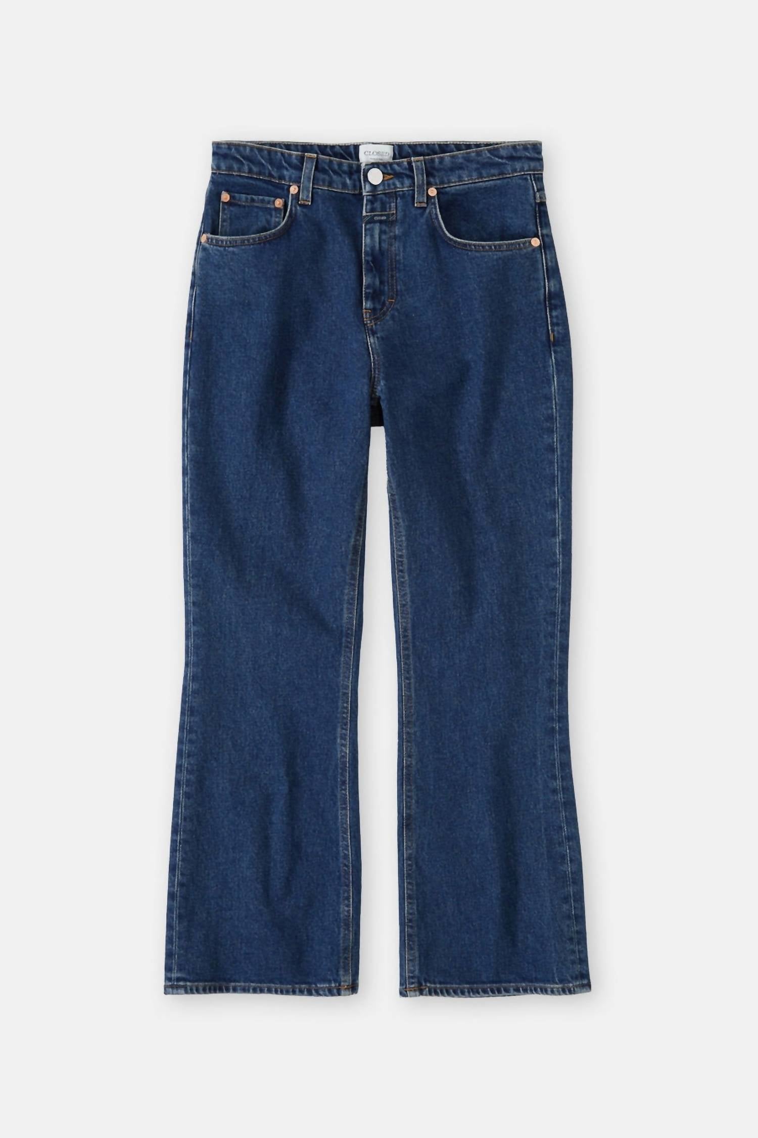 A flattering silhouette that's suprisingly versatile. Elevate your evening style with the Hi-sun Flared Jeans by CLOSED, a chic choice in a solid dark blue perfect for spring and Thanksgiving occasions. Designed with a flared leg and relaxed fit, these high-rise jeans offer comfort and on-trend workwear appeal. The zip closure ensures ease of wear while pockets add practicality. For maintenance, simply machine wash and tumble dry for convenience.
