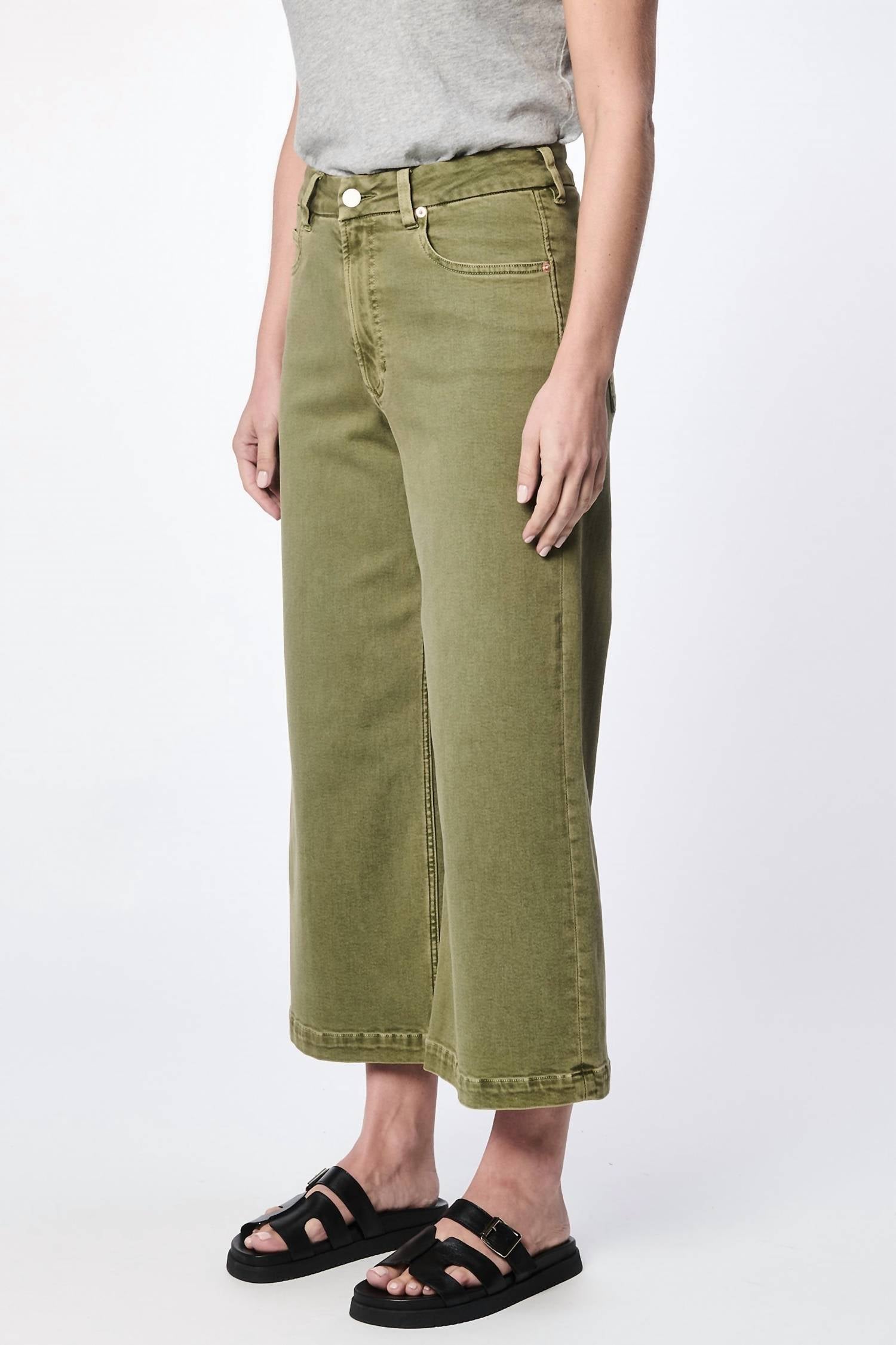 Just as cute as they are comfortable. Discover the Audrey Wide Leg Jean by Dear John Denim, a chic addition to your summer wardrobe in a trendsetting olive branch hue. Made with a blend of 90% cotton, 8% polyester, and 2% spandex, these pants feature a high-rise, relaxed fit with a flattering wide leg. The design includes functional pockets and a zip closure, ensuring both style and practicality. Perfect for travel and workwear, these jeans are easy to care for with machine wash and tumble dry instructions. Dimensions: Front rise 12.5", back rise 15.25", leg opening 23", inseam 25".