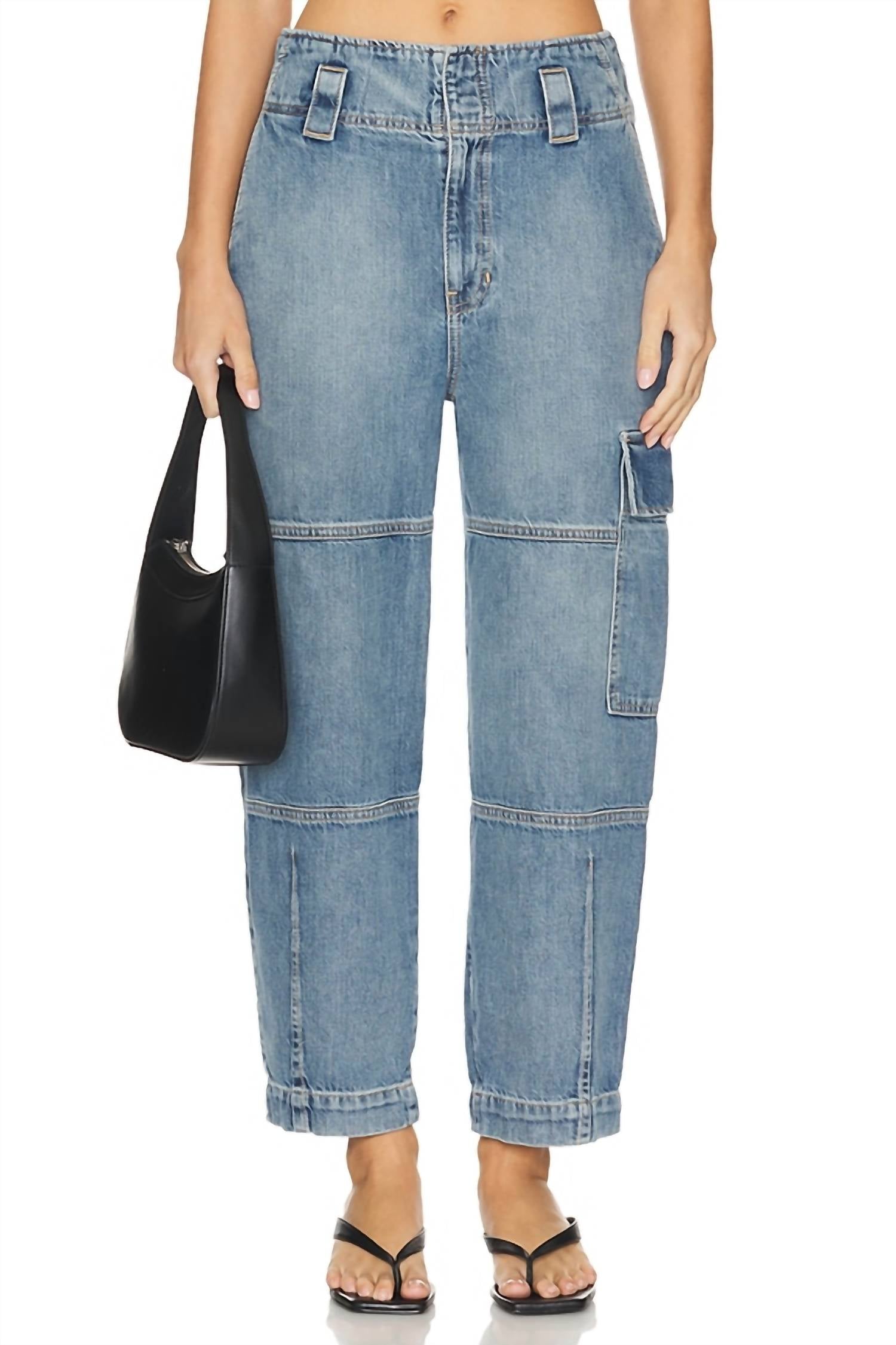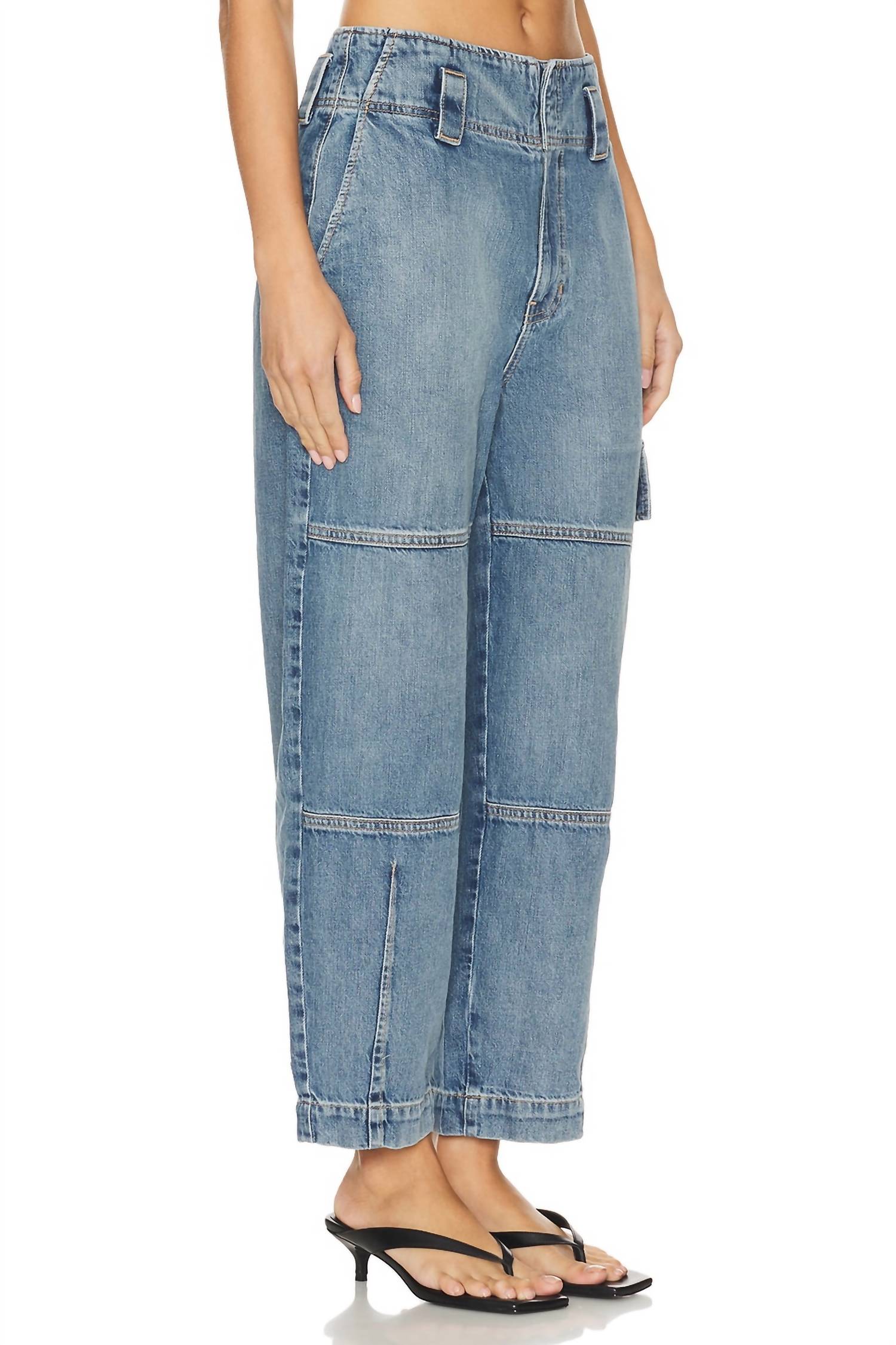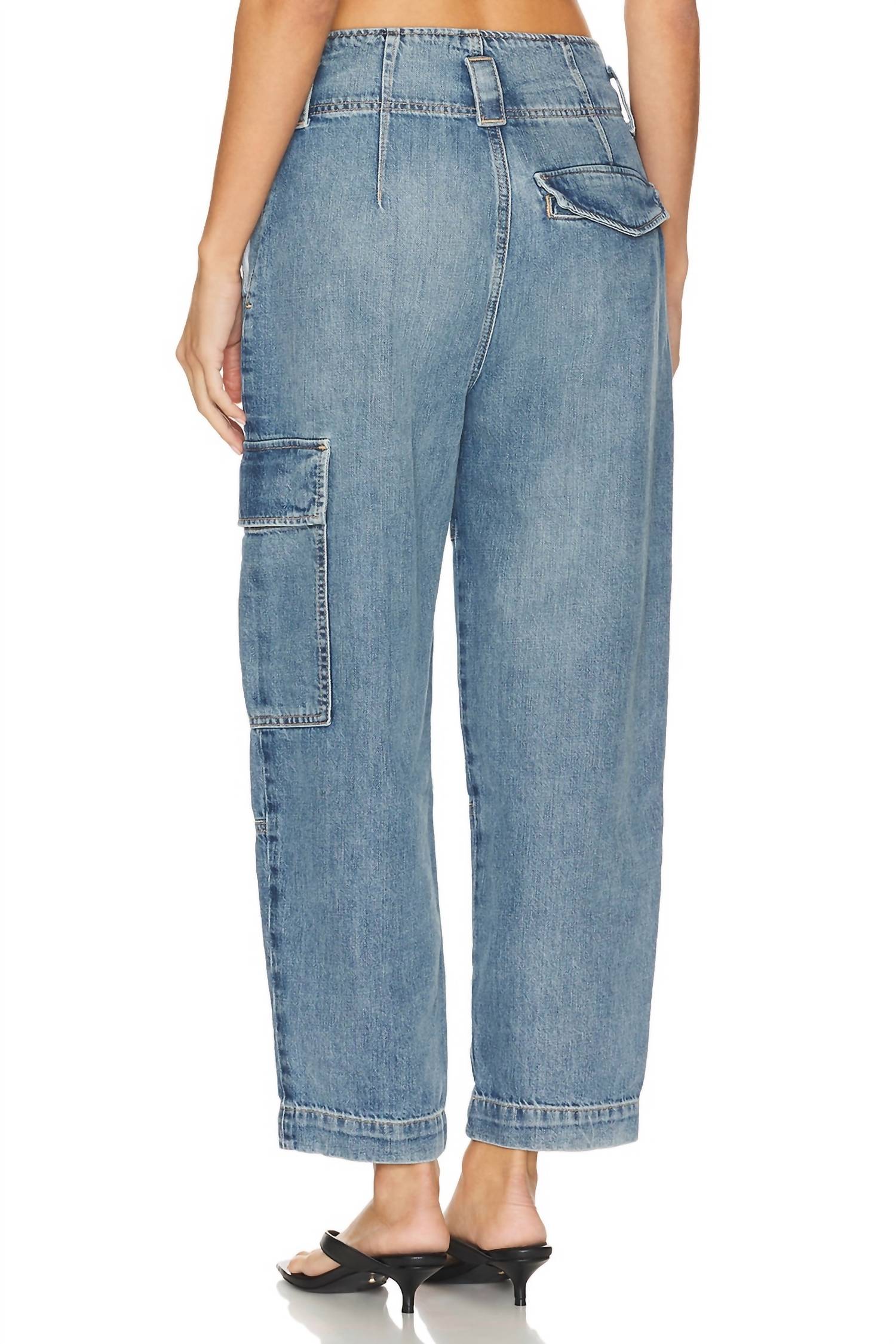Pair these wide leg jeans with mules, slides or your favorite strappy sandals. Discover the Juni Relaxed Cargo Jean by ETICA, a stylish addition to your wardrobe in captivating Moonbay. These wide-leg jeans feature a high-rise waist and a relaxed fit, crafted from a cotton blend comprising 59% cotton, 36% Tencel, and 5% recycled cotton. Made in Mexico with a versatile zip fly and hook closure, they offer practicality with a 5-pocket style complete with slanted front pockets. Easy to care for, these jeans are machine washable, making them a perfect choice for spring and holiday parties alike.