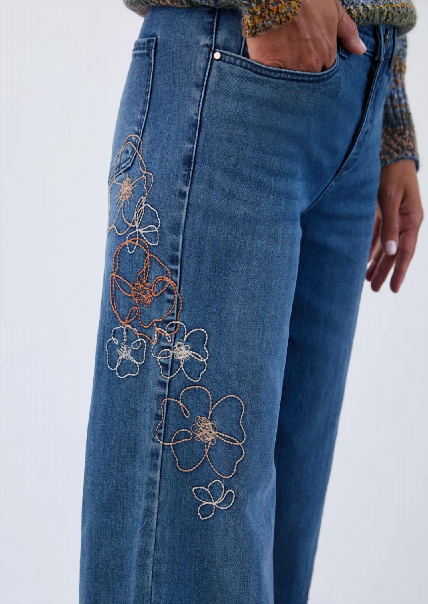 Just as cute as they are comfortable. Introducing the Christina Floral Embroidered Jeans by FDJ, an ideal addition to your wardrobe for a playful touch of feminine charm. Featuring a mid-rise fit with a 31-inch inseam, these jeans flaunt a wide-leg silhouette that is perfect for women with slender hips and a fuller derriere. Composed of 66% Cotton, 30% Polyester, 3% Viscose, and 1% Elastane, the jeans feature soft floral embroidery on classic medium-wash denim. Closure is via button, and they are designed for machine wash cold, hang to dry care, making these relaxed fit jeans both stylish and practical.