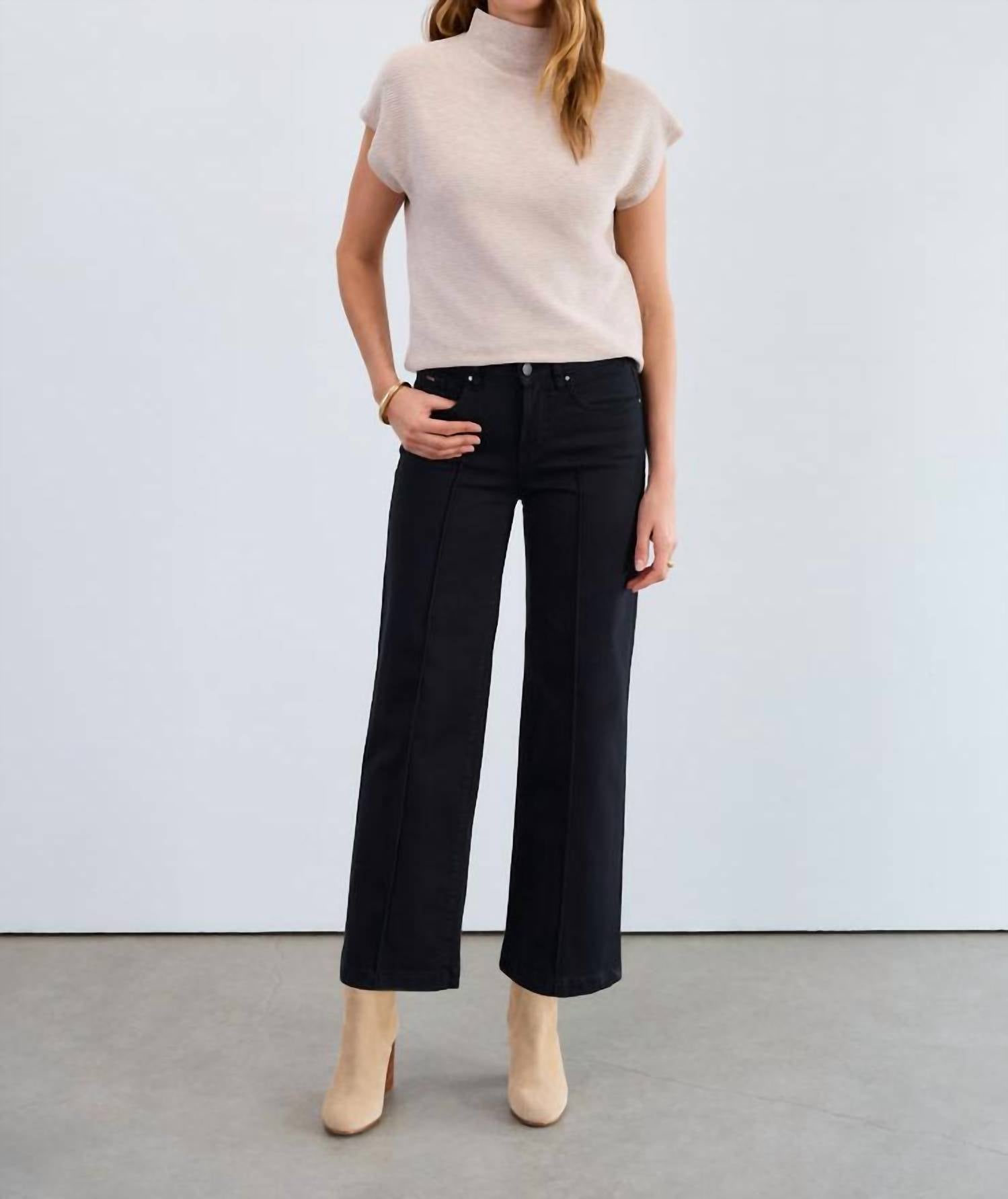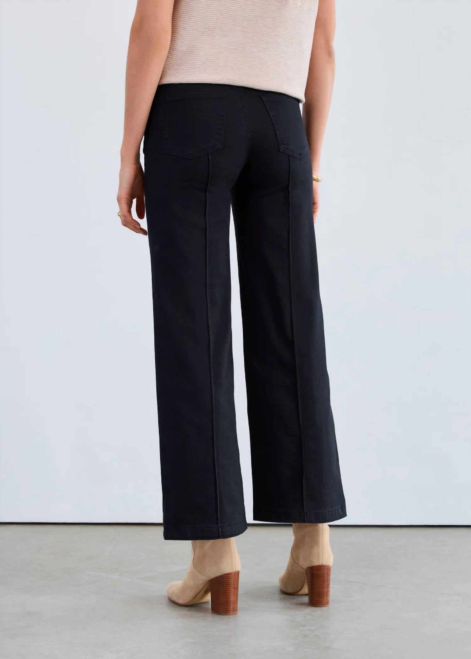 A flattering silhouette that's suprisingly versatile. Elevate your wardrobe with the Olivia Wide Leg Trousers by FDJ, designed for a relaxed yet tailored look. These trousers are made from a Cotton Blend with a clean wide-leg silhouette, featuring a mid-rise waist and a 30" inseam for a comfortable fit. The button closure adds a classic touch, while the solid black color enhances versatility, perfect for minimalist and holiday party occasions. Care is easy with machine wash instructions; simply wash cold, hang to dry, and iron on low temperature.