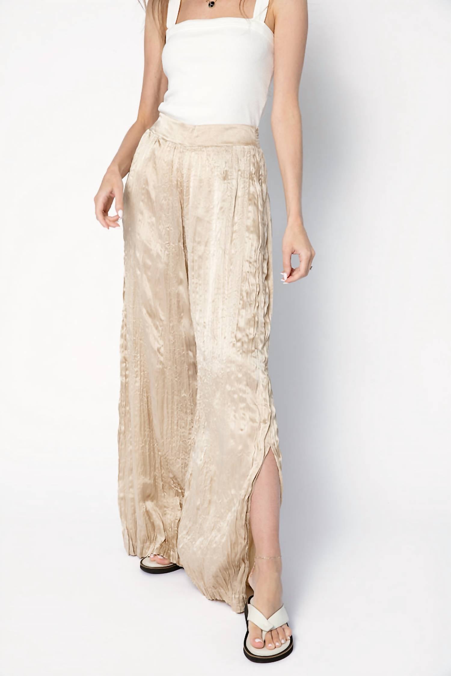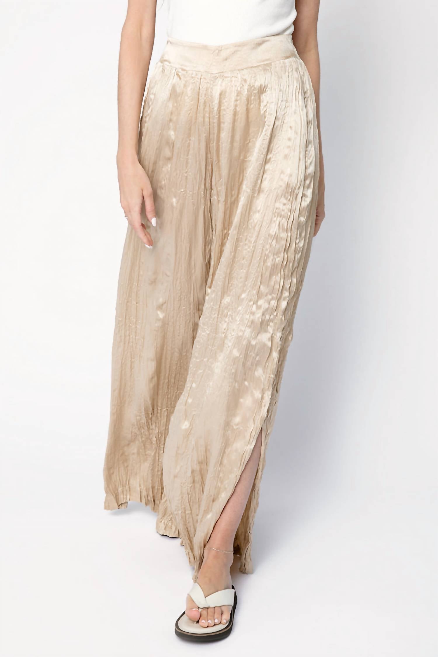 Pair these wide leg jeans with mules, slides or your favorite strappy sandals. Introducing the FRAME PJ Slit Pant in Pebble, a chic addition to your summer wardrobe with a nod to quiet luxury. These pajama-style pants are crafted from 100% silk and boast a full-length, wide-leg design with high-rise waist and side leg slits for a fluid, modern edge. Made in the USA, they close with a convenient pull-on closure. Easily cared for with a machine wash on a cold gentle cycle, use a warm iron or steam to restore softness and shine. Ideal for vacations, these pants offer a relaxed fit and sophisticated silhouette.
