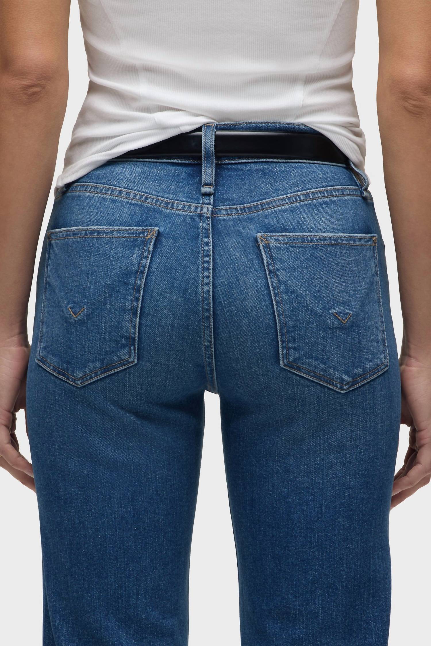 Just as cute as they are comfortable. Introducing the Rosie High-Rise Wide Leg Ankle Jean by Hudson, a stylish choice for any travel-inspired wardrobe in medium indigo. Designed with a high 10.25" waist rise and wide leg, this ankle-length jean offers a leg opening of 20" and is crafted from premium comfort stretch denim. Composition: 95% Cotton, 3% Elasterell-P, 2% Elastane. Closure: Zip closure with a covered button fly, including classic five-pocket details. Care: Machine wash cold with like colors, do not bleach, tumble dry low or hang to dry. Measurements are based on size 27 with a 29" inseam.