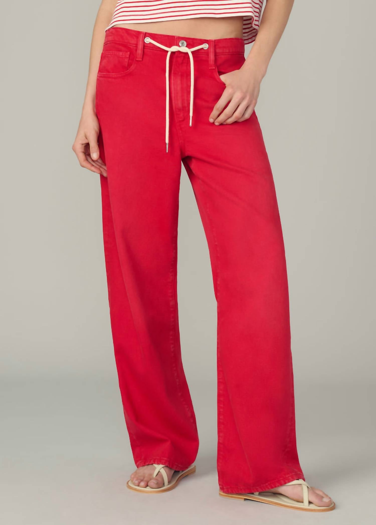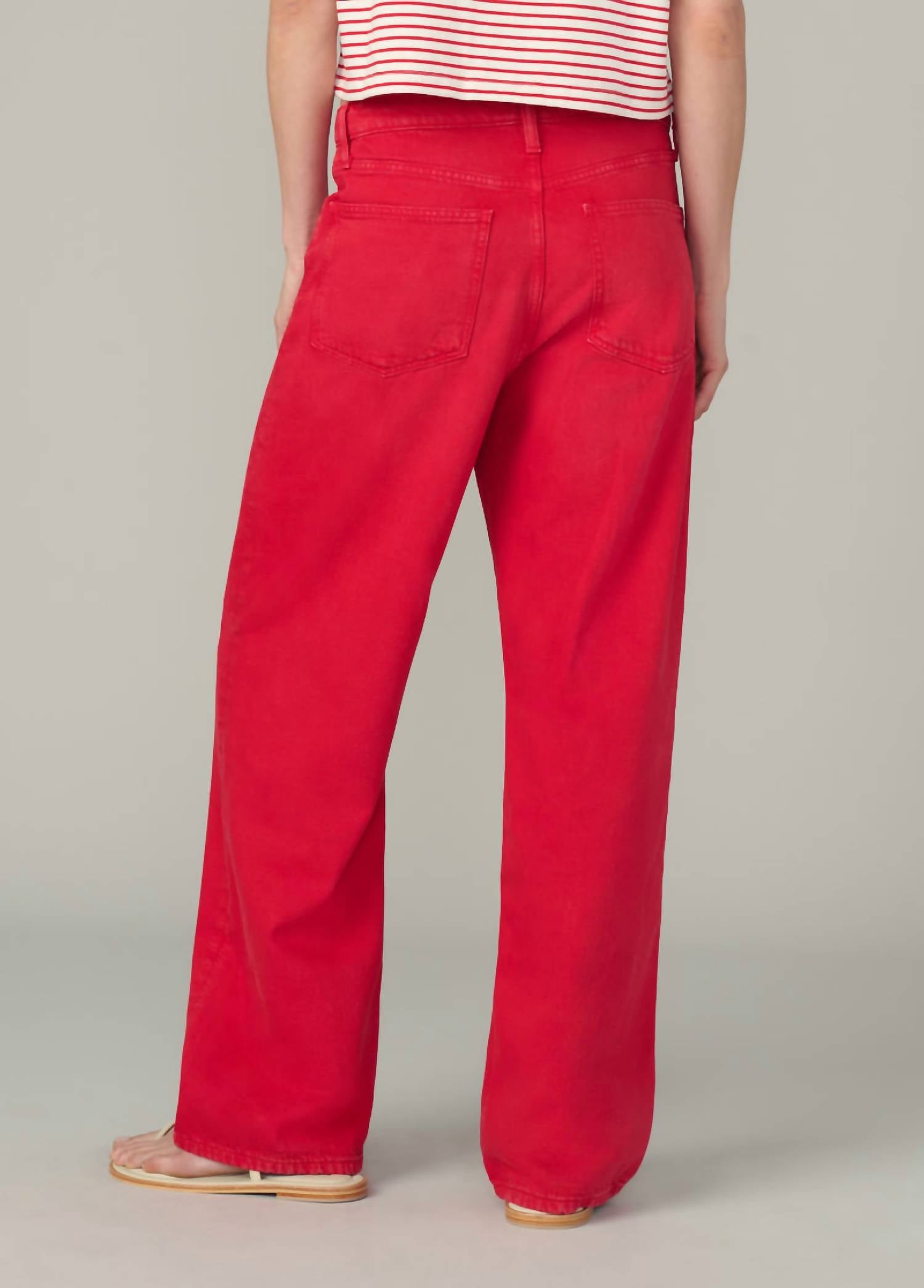 Just as cute as they are comfortable. Step into style with the Ryan Low Slung Baggy Jean by Joe's Jeans in an eye-catching Cherry Red hue. These wide-leg, relaxed-fit pants are crafted from solid cotton and feature a flattering low rise and a comfortable 31" inseam. With button closure and practical pockets, they're the perfect blend of function and fashion. Ideal for holiday parties this Spring, they capture the essence of the preppy trend. 100% Cotton.