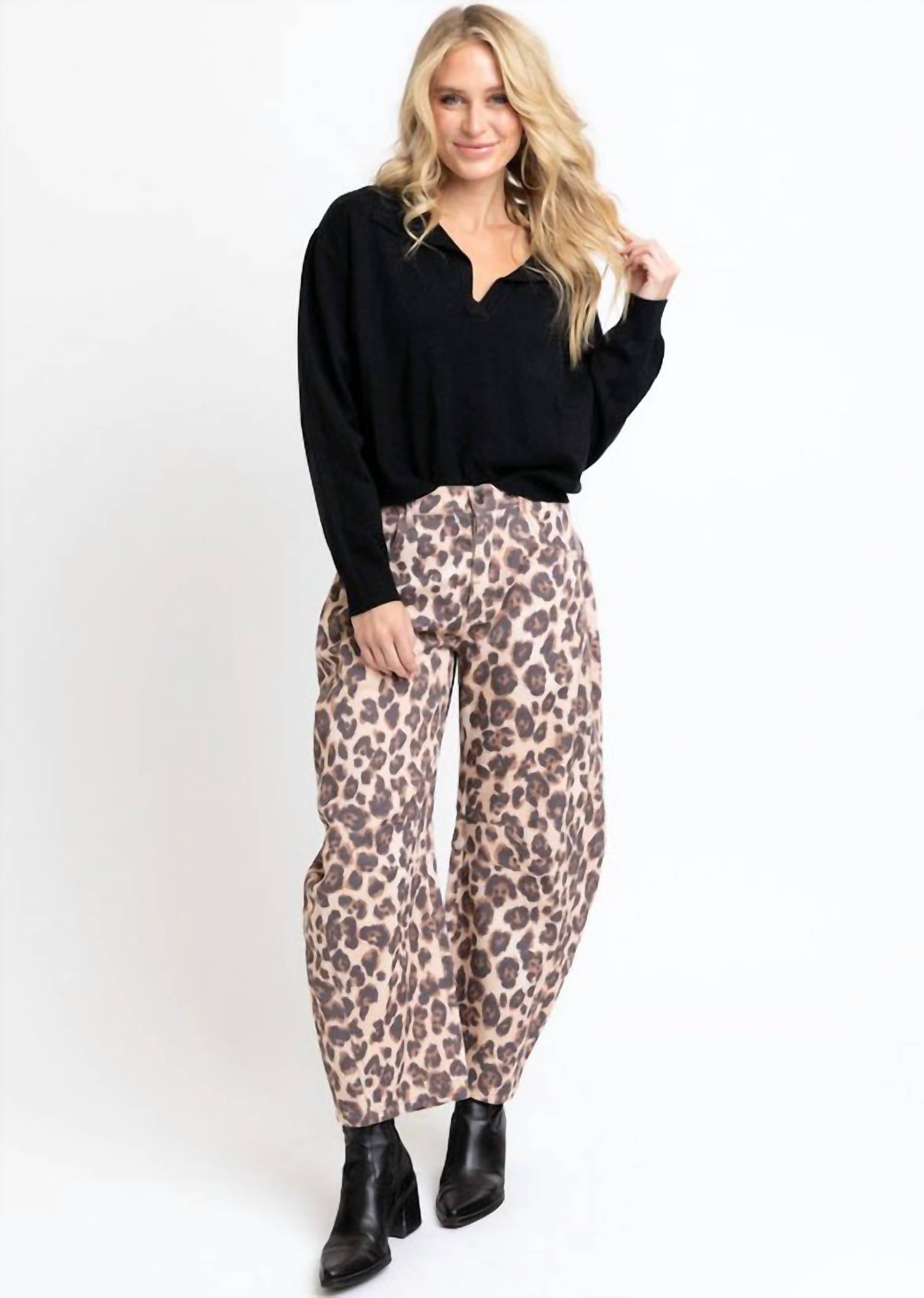 Karlie - Dani Leopard Denim Barrel Jean