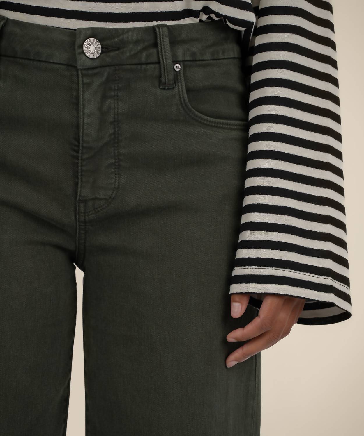 Pair these wide leg jeans with mules, slides or your favorite strappy sandals. Meet the Meg High Rise Wide Leg Jeans from KUT FROM THE KLOTH, crafted for style and comfort with their Sherwood Forest hue. These jeans boast a flattering high-rise and wide leg with a 10.5" rise and 27" inseam, enhanced by the signature Fab Ab pockets. Made from a blend of 48% Cotton, 44% Lyocell, 6% Polyester, and 2% Spandex, this piece offers a stretchy fit perfect for streetwear trends. Closure: Zip closure. Care: Machine wash cold inside out, tumble dry low, or lay flat to dry.
