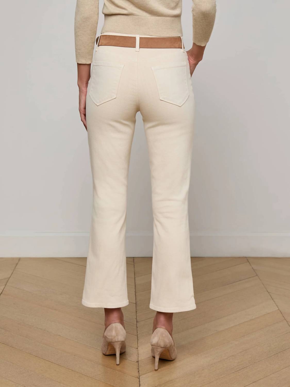 A flattering silhouette that's suprisingly versatile. Embrace the retro charm of the Noya Patch Pocket Slim Jeans by L'Agence, crafted in a chic French Vanilla hue. Featuring a high-rise waist with a flattering regular fit, these jeans boast a cotton blend material that provides a subtle stretch for comfort. The patch pockets add a hint of nostalgia, paired with a flared leg style for laid-back glamour. With a 10" rise and 27" inseam, these jeans are ideal for a minimalist spring vacation look. Closure: Button closure. Care: Machine wash.