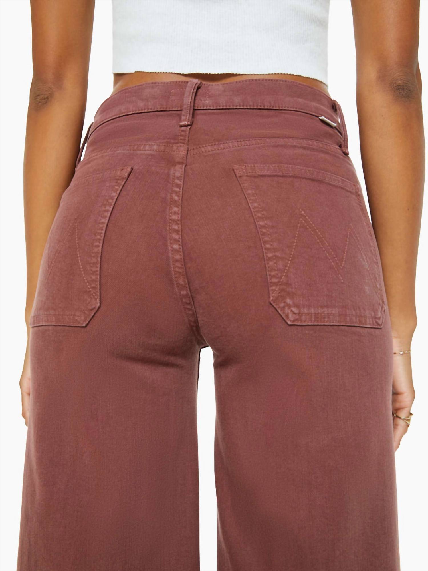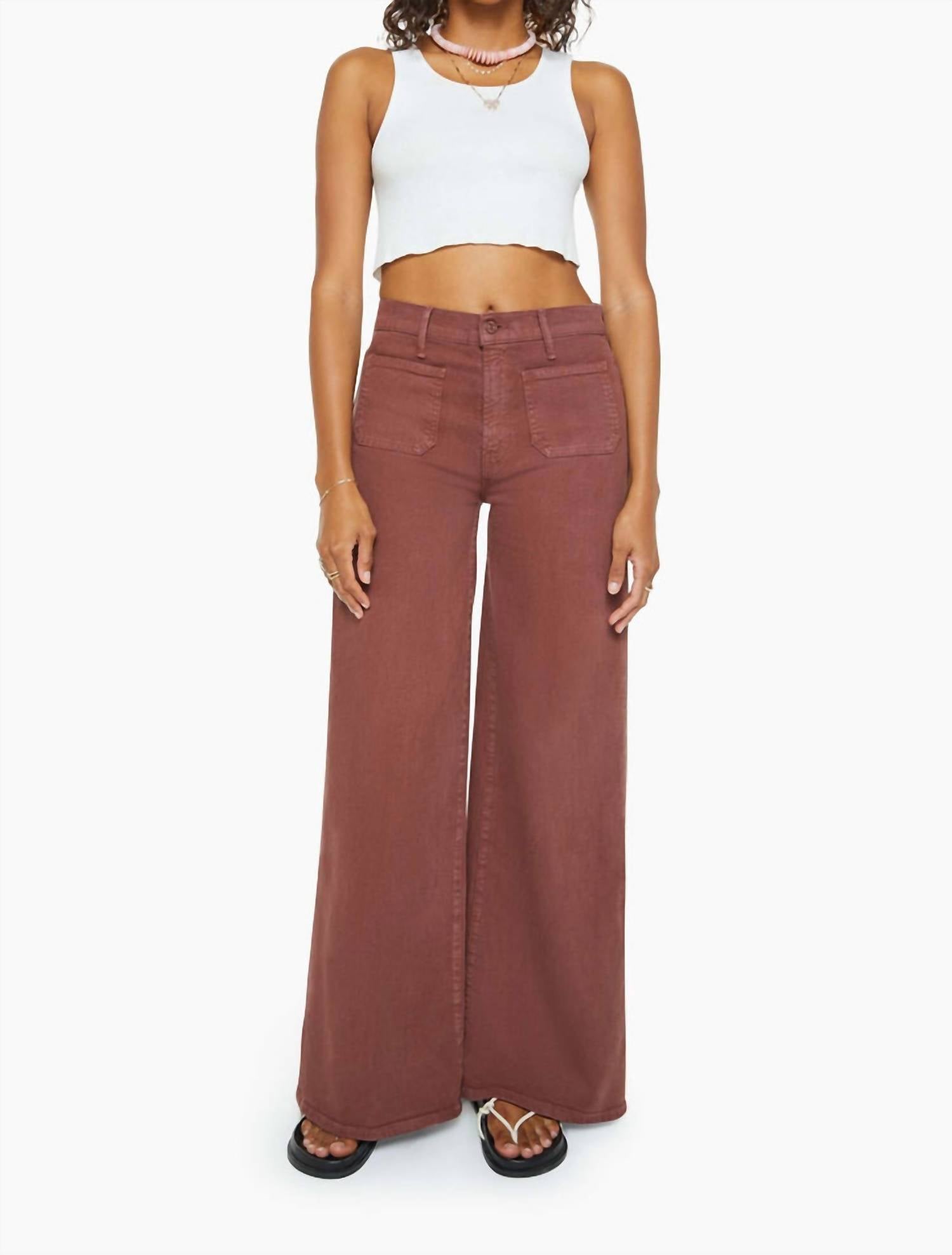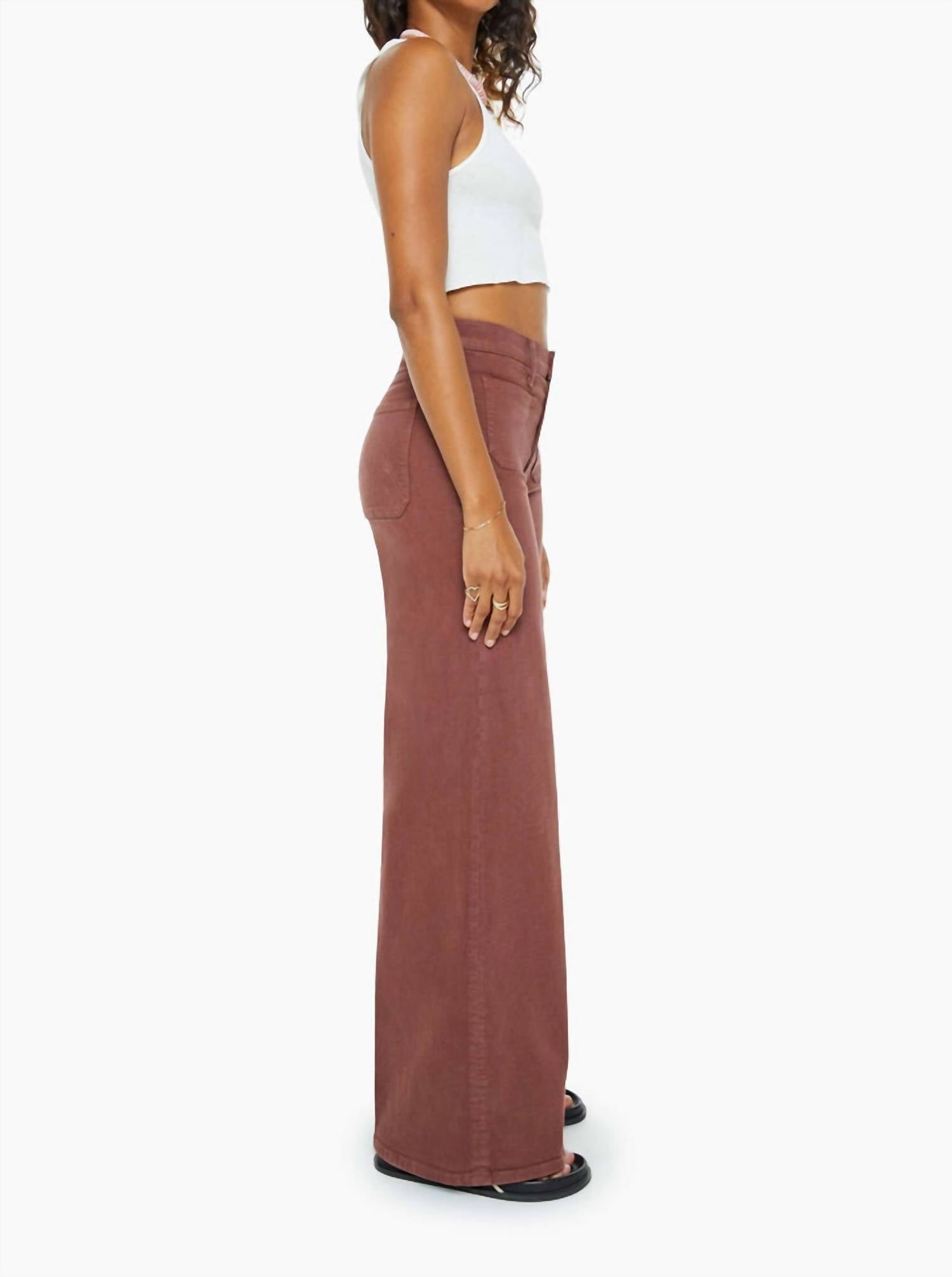 Pair these wide leg jeans with mules, slides or your favorite strappy sandals. Experience the timeless appeal of the Patch Pocket Undercover Jeans by Mother, crafted for women in a rich Friar Brown hue. These high-rise, wide-leg jeans feature a relaxed fit with a 32-inch inseam and a 26 1/2-inch leg opening, offering a unique blend of style and comfort. Made from a cotton blend comprising 60% cotton, 37% lyocell, and 3% elastane, this piece ensures breathability and flexibility. The button closure and patch pockets add functional flair, while care is simple with machine washable and tumble dry instructions. Perfect for the streetwear trend, it’s an ideal choice for fall occasions.