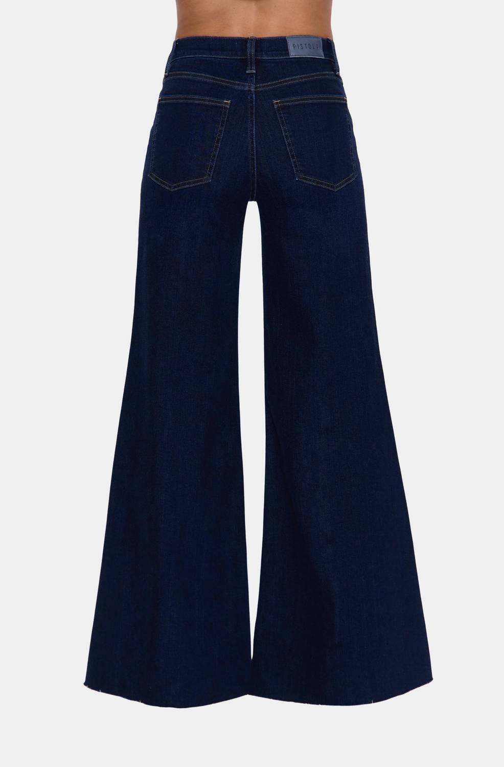 Step out in effortless retro style with the Pistola Izzy Mid Rise Wide Leg Jeans in Tristesse. With a trend-forward '70s-inspired design, these denim jeans feature a relaxed fit and groovy wide-leg silhouette with an exaggerated flare at raw hems. Crafted from a blend of 75% cotton, 13% rayon, 10% polyester, and 2% polyurethane, they have a practical five-pocket style and a zip fly with button closure. Easy to care for, simply machine wash and tumble dry these dark wash jeans, which have a 28.5" inseam and a 10.75" front rise.
