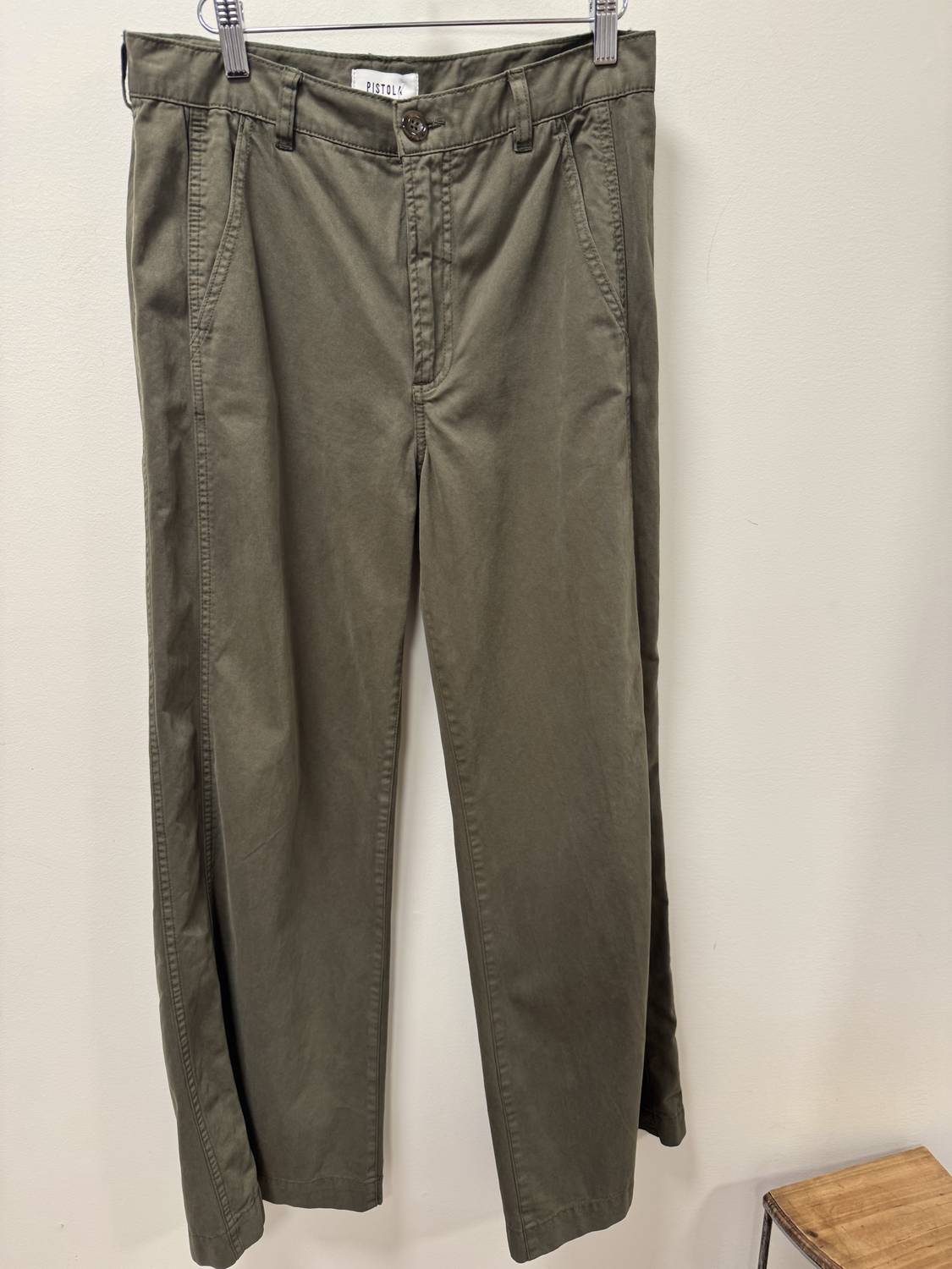 A flattering silhouette that's suprisingly versatile. Discover the Lightweight Jadyn Pants by PISTOLA, your perfect companion for effortless streetwear style in a striking green hue. With a relaxed high-rise, wide-leg fit, these pants feature practical slant hip pockets and welt back pockets. Crafted from 100% cotton twill, the shell offers a non-stretch yet comfortable feel adorned with fading details and a leather logo patch at the back. Closure is secured with a button and zip fly, with care being a simple cold wash ensuring longevity and vibrancy.