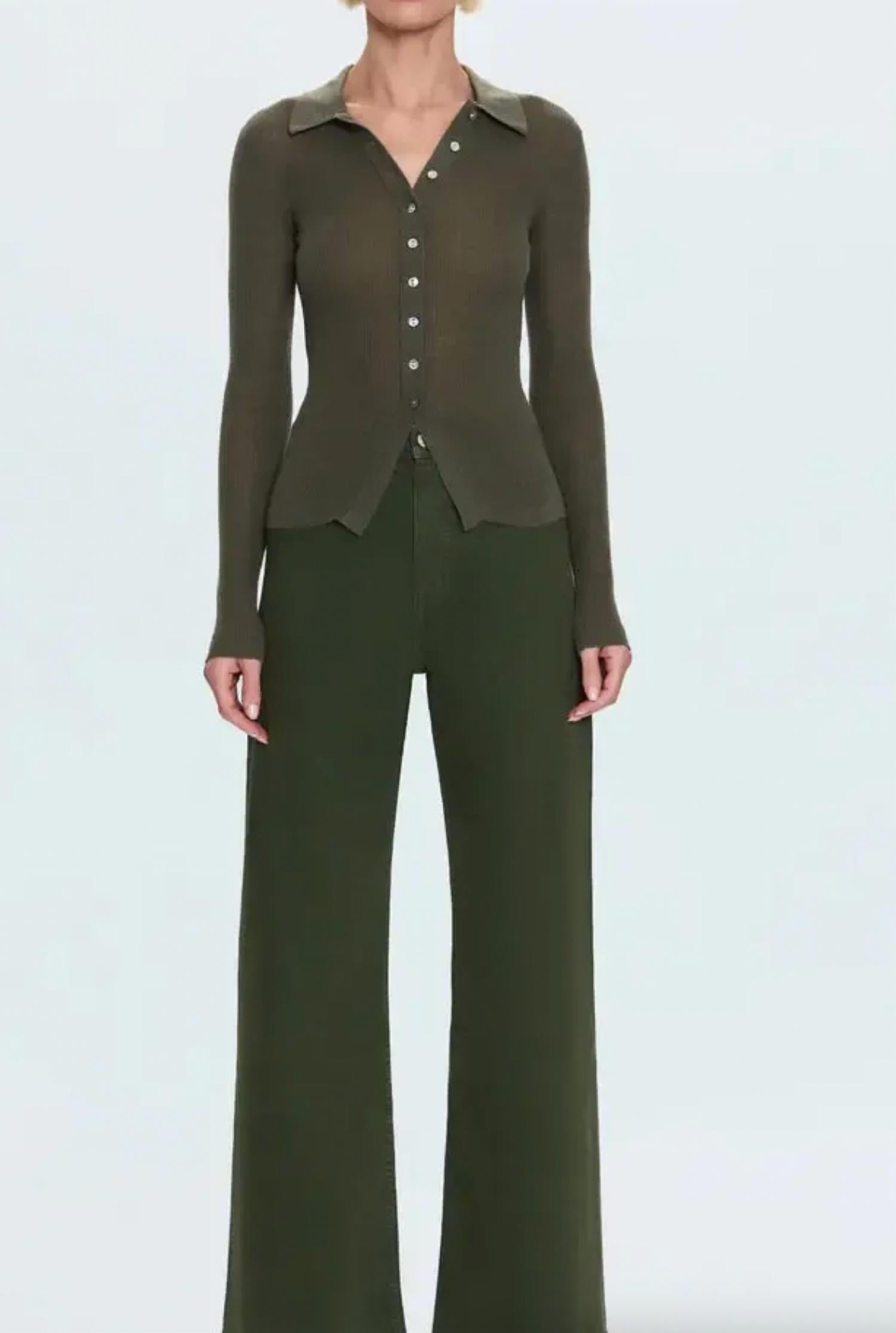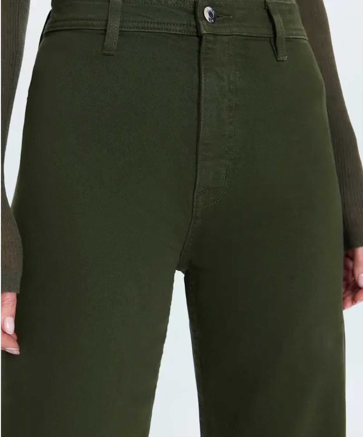 Just as cute as they are comfortable. Introducing the Penny High Rise Wide Leg Jean by PISTOLA, a statement piece in striking laurel green that brings effortless elegance to your wardrobe. This women's jean features a high-rise waist and wide-leg style, with a relaxed fit and a seamless design that flatters and elongates. Crafted from a 99% cotton and 1% elastane blend for comfort-stretch and durability, it includes a zip closure and practical pockets. With a 28" inseam and a leg opening of 21 1/4", pair it with any ensemble for refined style. Care instructions: Machine wash and tumble dry for easy maintenance. Model is 5’9” wearing size 26, Rise: 12”.