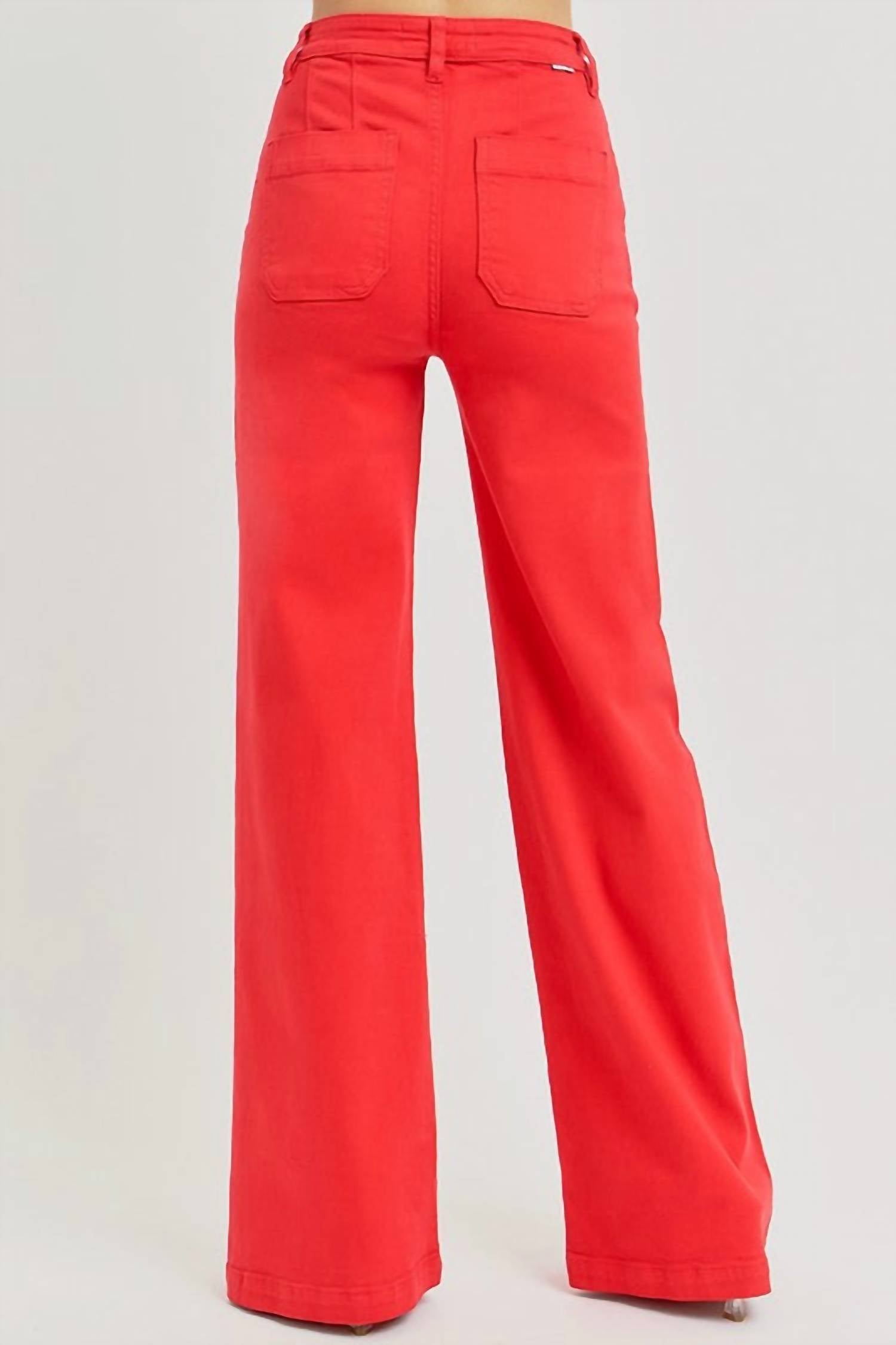 A flattering silhouette that's suprisingly versatile. Introducing the Tummy Control High Rise Wide Pant by RISEN, a wardrobe staple in vibrant Fiesta designed to flatter your figure. These wide-leg pants feature a relaxed fit with a high-rise, 11-inch waist rise, and a 33-inch inseam, perfect for elongating your legs. Crafted from a cotton blend, this solid pattern piece includes practical pockets and a button closure. For care, simply machine wash and tumble dry, making them ideal for effortless style during summer vacations or Valentine's Day outings.