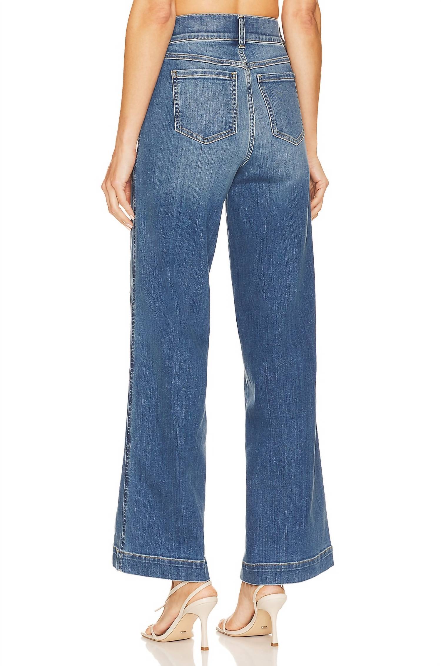 Pair these wide leg jeans with mules, slides or your favorite strappy sandals. Introducing the Seamed Front Wide Leg Jeans by Spanx, crafted for a relaxed fit in a chic indigo hue. These jeans feature a high-rise waist with a stylish elastic waistband, and are designed with a pull-on closure for comfort and convenience. Composition details include a shell made of 91% cotton, 7% polyester, and 2% Lycra® elastane with a lining of 70% polyester and 30% cotton, making them both comfortable and durable. Made in Mexico, these wide-leg jeans showcase a light fade and whiskers effect, with fake front and back pockets for a sleek streetwear vibe. Care for them easily with machine washing instructions.