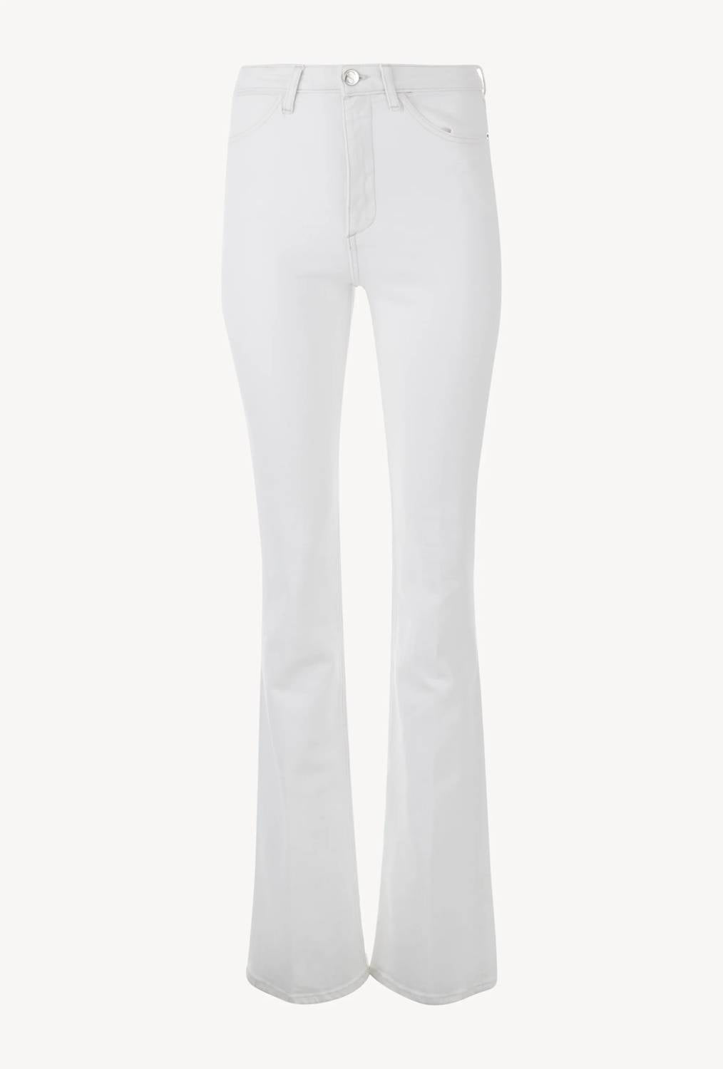 Just as cute as they are comfortable. Elevate your wardrobe with the Micro Flare Denim Jean by SPRWMN, an elegant choice for spring evenings. These white denim jeans feature a high rise and slim fit, crafted from 98% Cotton and 2% Elastane stretch Italian denim. Designed with a 35" inseam, 11.5" rise, and 18.5" leg opening, they offer a narrow flare that extends past the ankle. Closure: Front zipper and button. Care: Machine wash.
