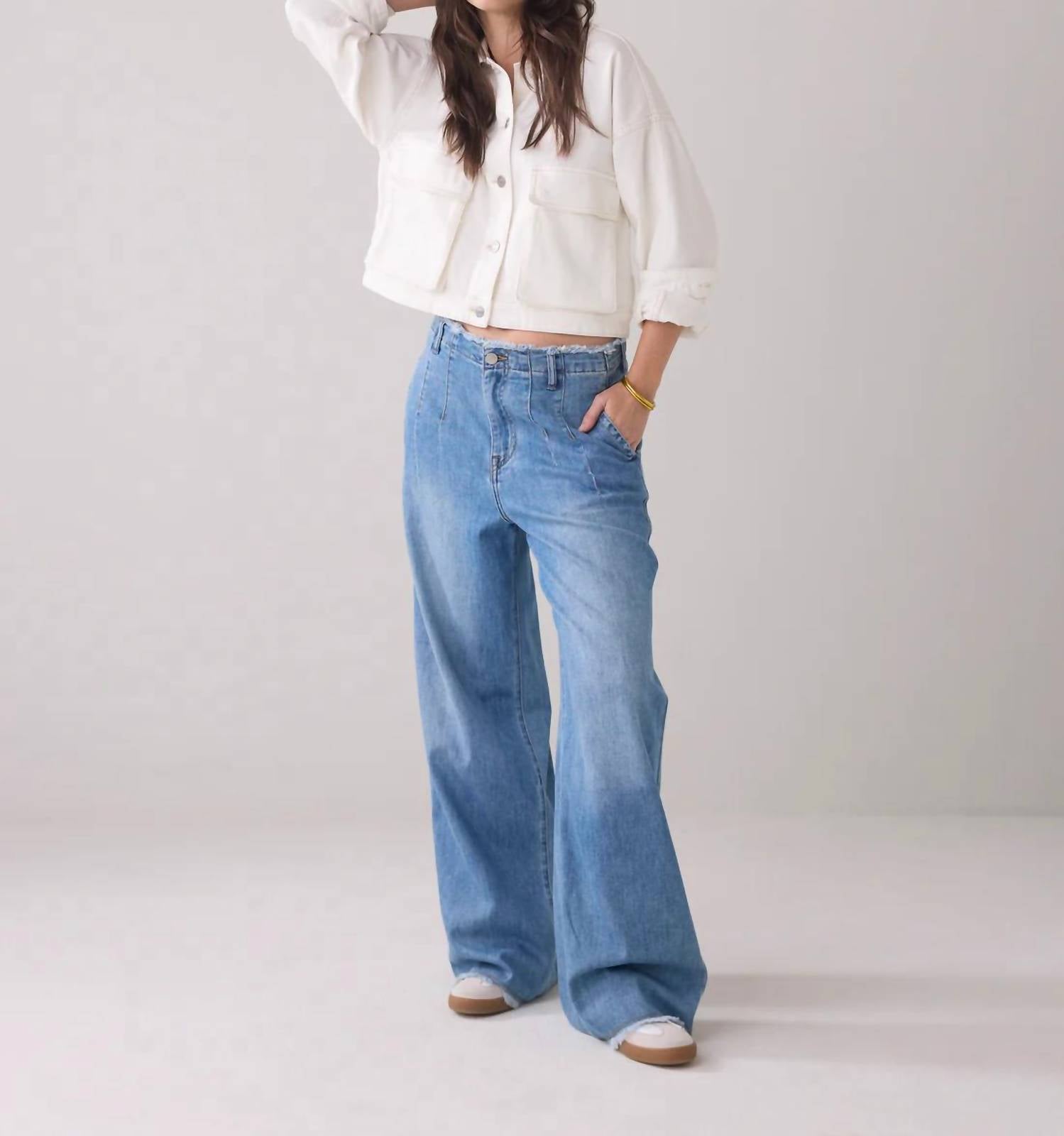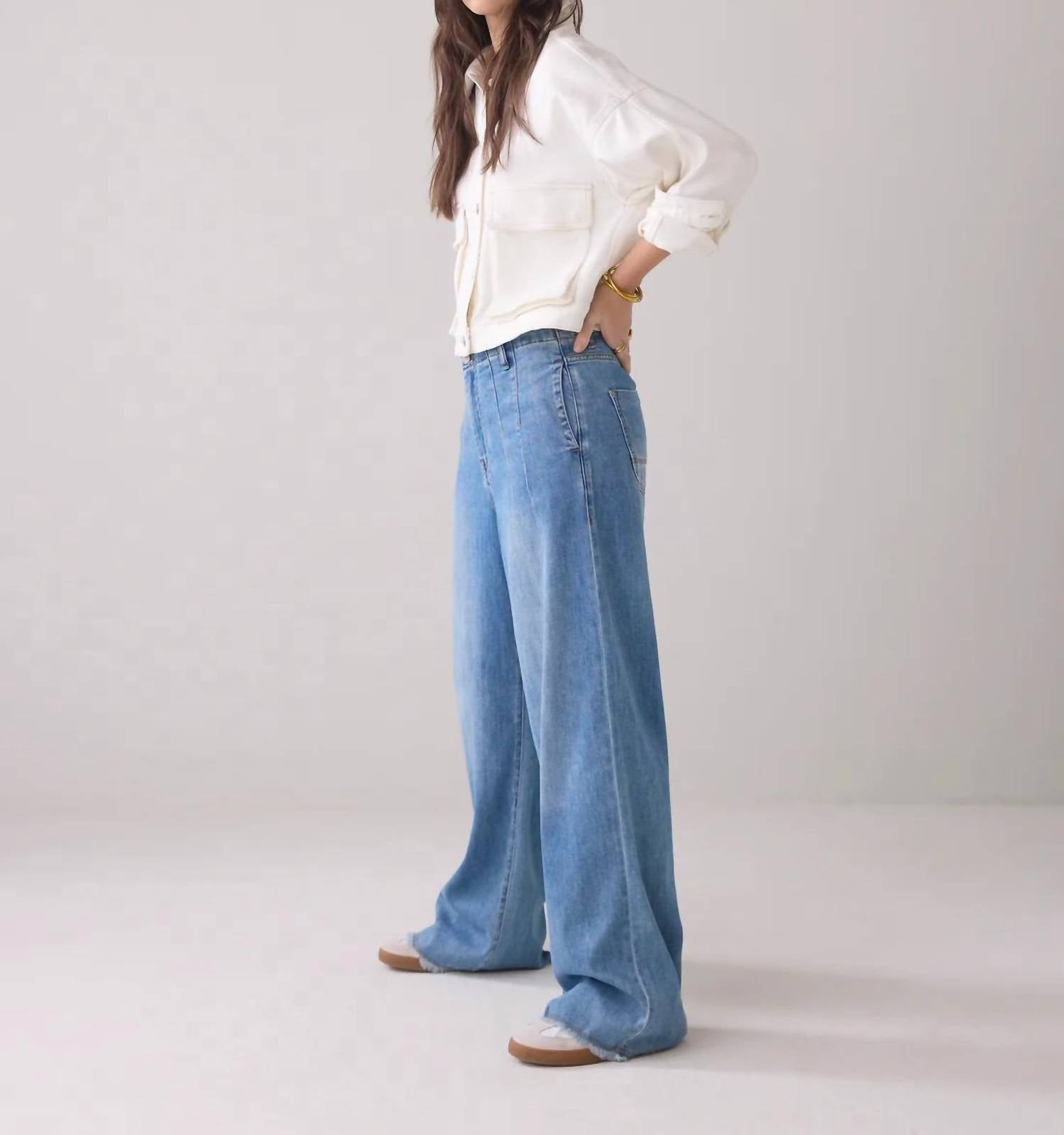 Pair these wide leg jeans with mules, slides or your favorite strappy sandals. Discover the Wide Leg Soft Denim Jeans by Summum, crafted for effortless comfort and style. Designed for women, these jeans feature a relaxed fit with a high-rise waist and a chic wide-leg style in bleached denim. Composition: 95% cotton, 5% polyester. Closure: Button closure. Care: Machine wash and line dry. Perfect for spring vacations or casual Easter gatherings.