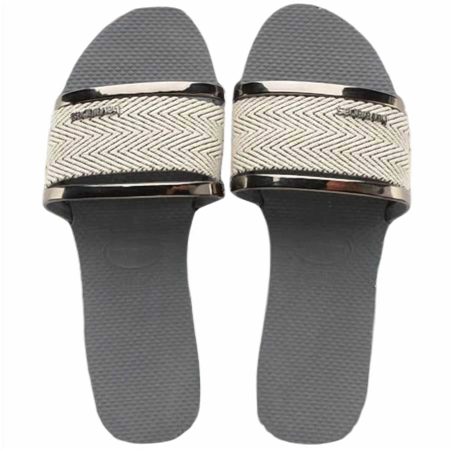 Classicly cute and all-day-wearable. We love this sandal. Hit the town in comfort and style. These premium slides feature a metallic and zig zag printed strap, metal Havaianas logo, and dual-density soles. Please note the sizing is as follows: 6, 7/8, 9/10
