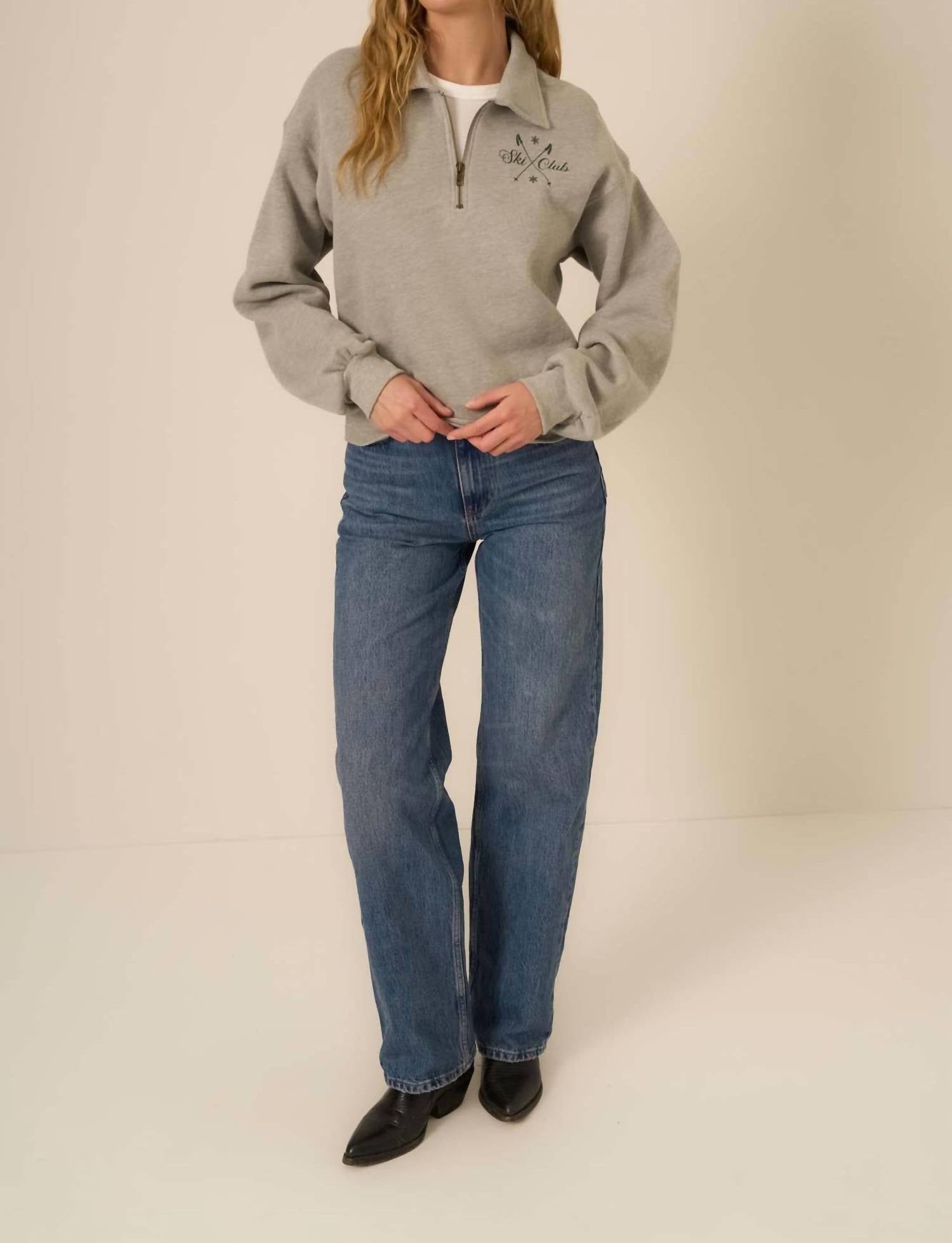 Cozy fabric, impeccable design - Meet the sweatshirt that you'll never want to take off. Meet the Ski Club Half Zip Sweatshirt by PROJECT SOCIAL T, a blend of sporty charm and cozy comfort in Heather Grey. This sweatshirt features long raglan sleeves, a half zip neckline, and a relaxed fit with drop shoulders for a laid-back style. Constructed with 50% Cotton and 50% Polyester fleece, it offers warmth and softness for cooler days. Care: Machine wash cold inside out with similar colors, do not bleach, lay flat to dry, cool iron if needed. Front length: 23" from shoulder. Chest: 20.5". Model is wearing a size small.
