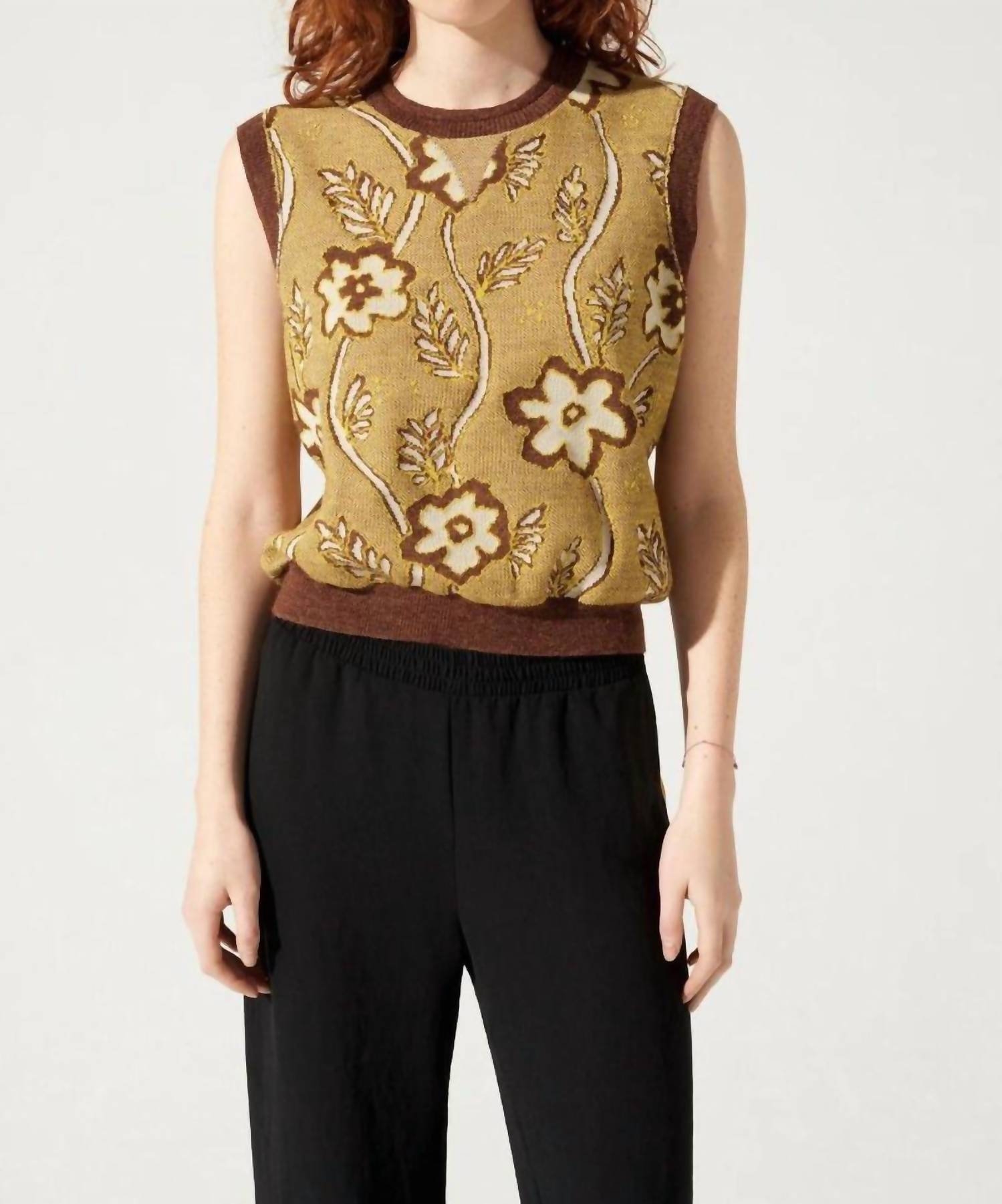 Experience the perfect blend of comfort and style with this trendy crew neck sweater, designed to effortlessly elevate your wardrobe. Pair it with your favorite denim and loafers for the perfect look. Experience the elegance of the Toast Sweater Vest by Cotelac, a unique piece designed with a close-fitting tank top silhouette and a round neckline. This vest contrasts a ribbed finish with the intricate jacquard fabric, showcasing a House design crafted by the Style Office. Composition: 70% Polyester, 30% Alpaca with a 100% Polyester fabric. Care: iron at low heat (110°), gentle dry cleaning, do not tumble dry, dry flat.