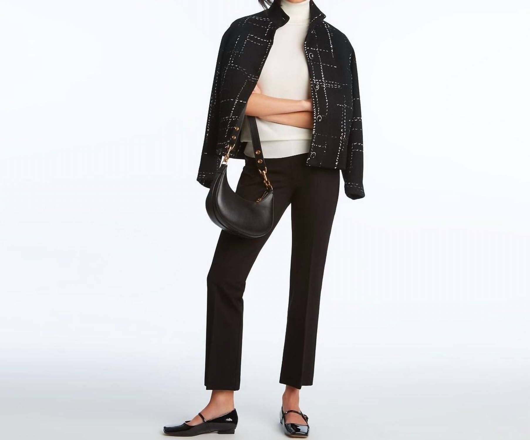 Just the right amound of preppy and polished. Elevate your wardrobe with the Plaid Jacket by Elliott Lauren, a masterful blend of modern sophistication and classic charm. This black and white piece features a striking plaid pattern and button closure, making it an easy match for various looks. Crafted from 38% Polyester, 30% Acrylic, 30% Nylon, and 2% Spandex, it ensures both comfort and style. Made in the USA, this jacket should be dry cleaned to maintain its pristine look and feel.