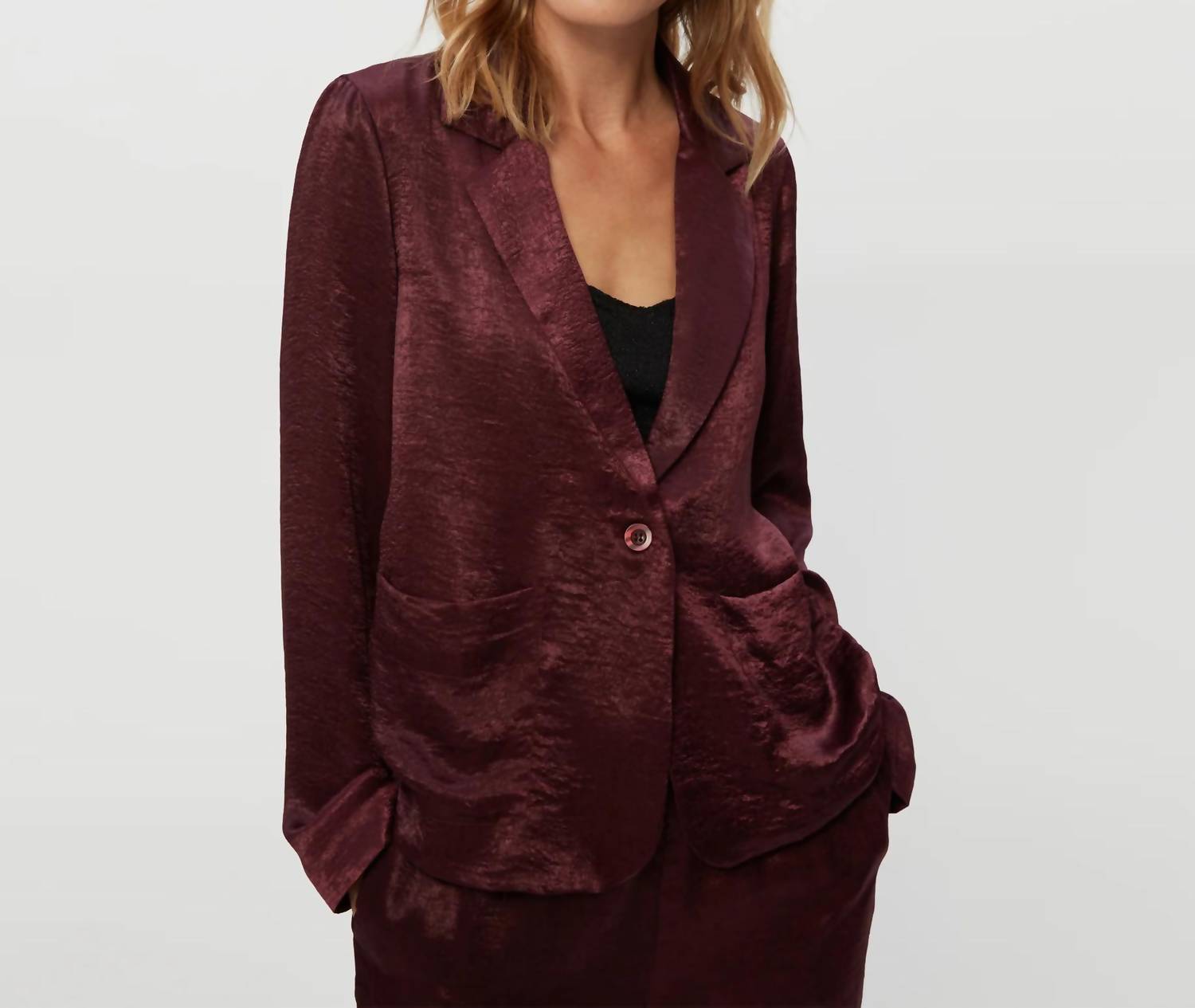 Tailored to perfection, this blazer will be your go-to jacket for years to come. Relaxed tailoring is the hallmark of this chic blazer. Crafted from a fluid hammered satin, the Paula is an unstructured lined jacket with sizable patch pockets. Complete the set with the matching Sanji Pants. Details Fabric: Hammered Satin: 100% Recycled Polyester Care: Dry Clean Fit: Semi-Fitted Style: DST025 Origin: Imported