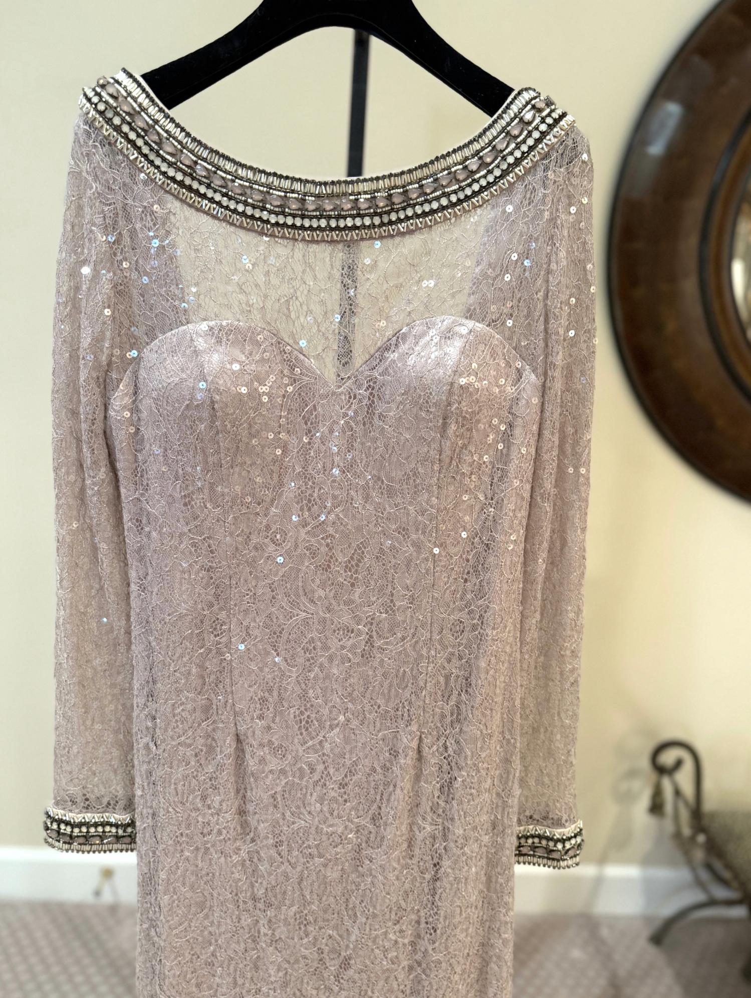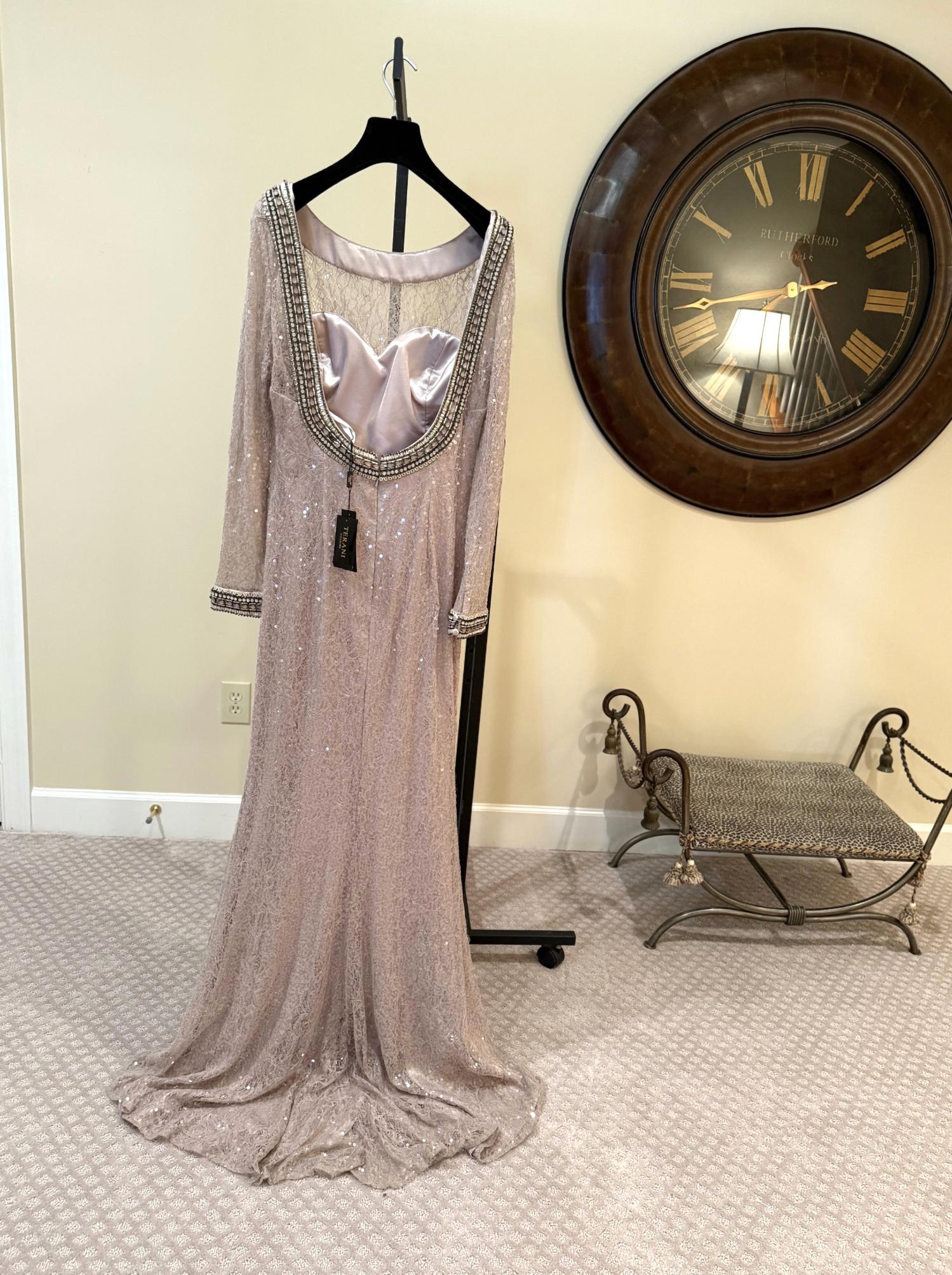 Just add a cute little clutch and a matching heel for the perfect event look. Elevate your evening with the Beaded Sheer Mesh Gown by Terani Couture, a stunning choice for any prom or formal event. This full-length gown in a delicate rose hue features long illusion sleeves with ornate beading and embellishments. Its boatneck silhouette complements the open back design, providing a captivating yet elegant look. Closure: Zip Closure.