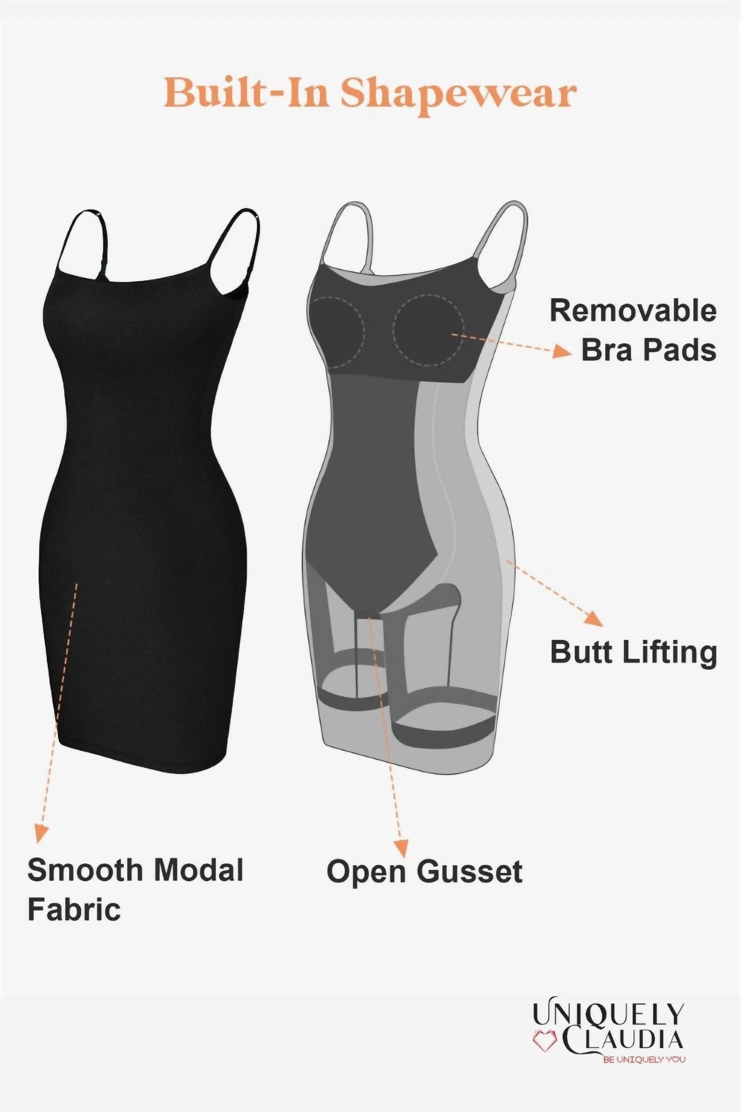 The kind of easy and flattering dress you'll be reaching for all season long. The Kelly Bodycon Mini Shaper Dress by Sweetkama is your perfect companion for style and comfort, crafted with spaghetti straps for a sleek look. Made from 92% Modal and 8% Spandex, this dress features a solid black color and bodycon silhouette that gracefully contours your figure. An imported design with a pull-on closure ensures ease of wear, offering a smooth fit with no visible lines. Care for this mini dress by hand washing, avoiding dry cleaning, ironing, and bleaching to maintain its form.