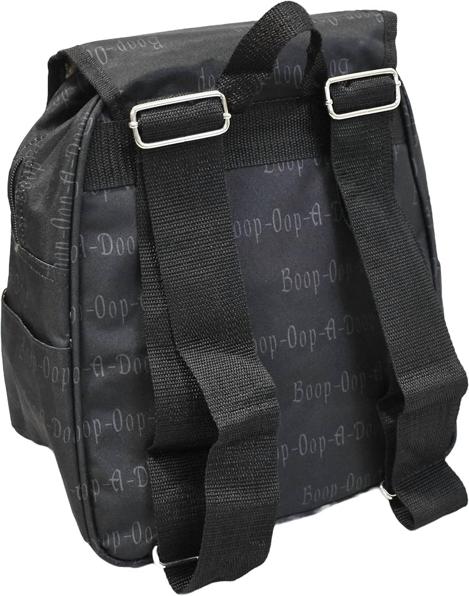 Betty Boop theme. Durable high-density polyester. Multiple pockets. Adjustable back shoulder strap. 13'' x 11'' x 7''. Water resistance level: not water resistant.