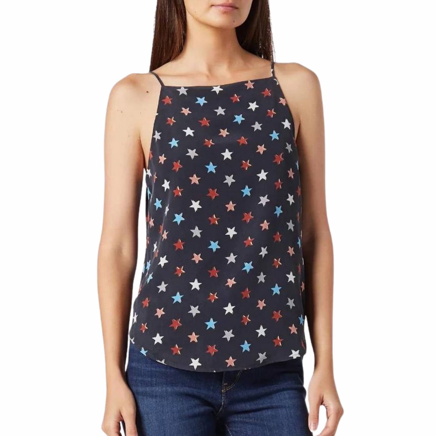Perfect for layering or cute enough to wear it on its own. Featuring a playful star pattern in Eclipse Multi. Designed with a halter neckline and spaghetti straps, offering a subtle drape that adds elegance. Made from 100% Silk. Provides a luxurious feel and effortless style. Pull-on. Dry clean only.