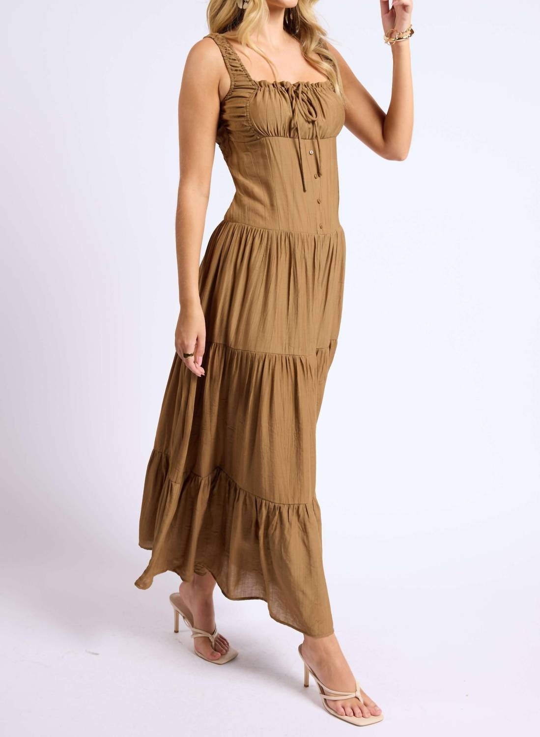 Who doesn't love a good maxi dress? This one you'll be reaching for season after season. Turn heads with the "Light A Fire" Maxi Dress by Sage The Label, a standout piece in a rich brown hue. This sleeveless A-line silhouette features a stylish squareneck and is crafted from lightweight, crinkle-effect fabric, ensuring comfort and allure all day. Composition: 82% Rayon, 18% Nylon for the self and 92% Polyester, 8% Spandex for the lining. Closure: Pull on, with no pockets for a sleek profile.