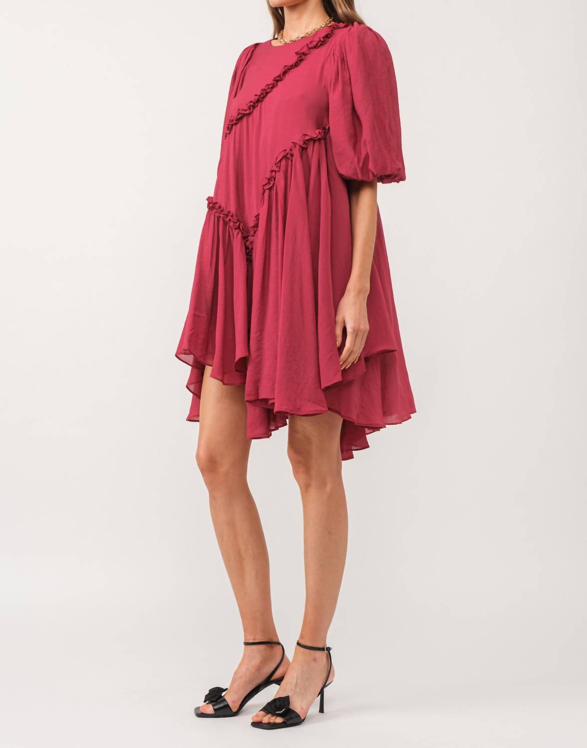 Show off just the right amount of skin in this adorable assymetrical dress. Introducing the Izzy Asymmetrical Dress by Sofie the Label, a show-stopping piece in a stunning cognac hue designed for the fashion-forward woman. This dress features short sleeves and a shift silhouette with unique asymmetrical detailing. Crafted from 100% cotton, it offers a super soft, lightweight feel perfect for all-day wear. Closure: Button closure. Care: Hand wash, line dry.