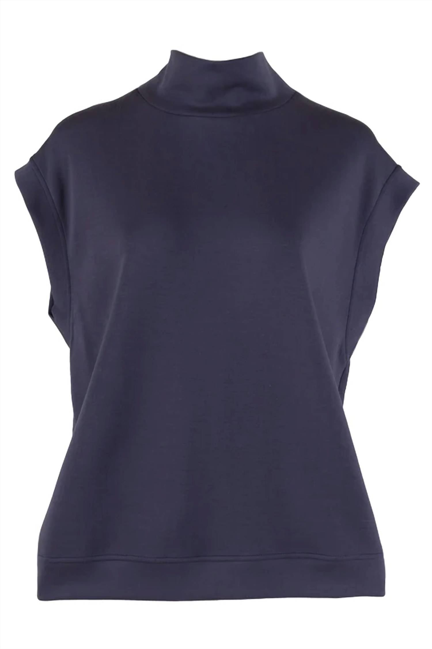 Fit, fabric and functionality. This tank top checks all the boxes. Chic tunic pullover perfect for effortless layering. Crafted with cap sleeves and a stylish mock neckline. Offers a breathable oversized fit. Composed of 48% Modal, 48% Polyester, 4% Spandex. Pull on style. Machine or hand wash cold or warm, hang dry. Measures 26" for size Small.