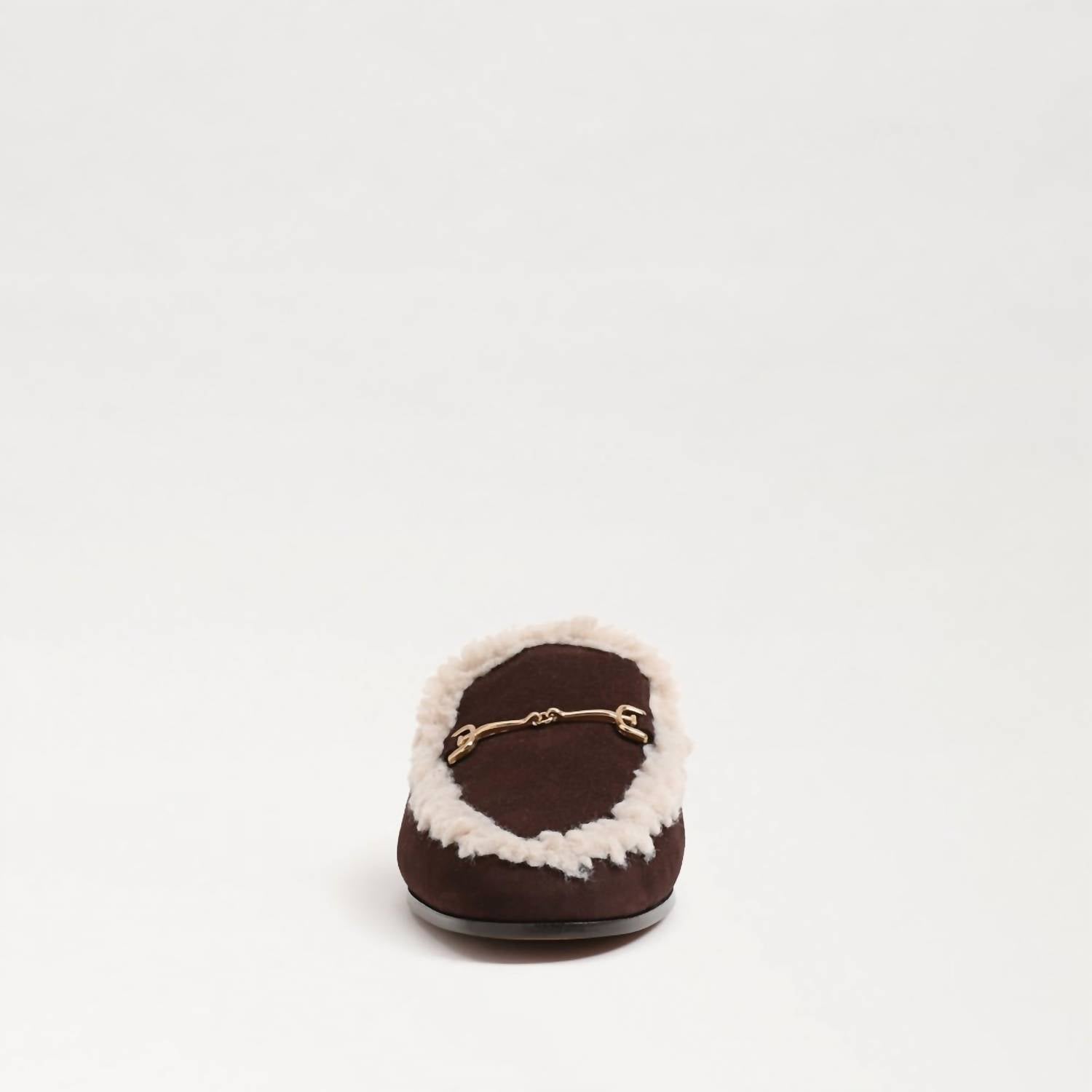 A classic loafer that is both comfortable and polished. Your favorite mule is ready for cold weather: the Linnie Cozy features a shearling-trim with a horsebit detail and mini stacked heel. Try pairing them with midi hems to make casual elegance your own this season. Heel Height: .37 inches Toe: Almond Toe Material: Suede, Synthetic Insole: Synthetic