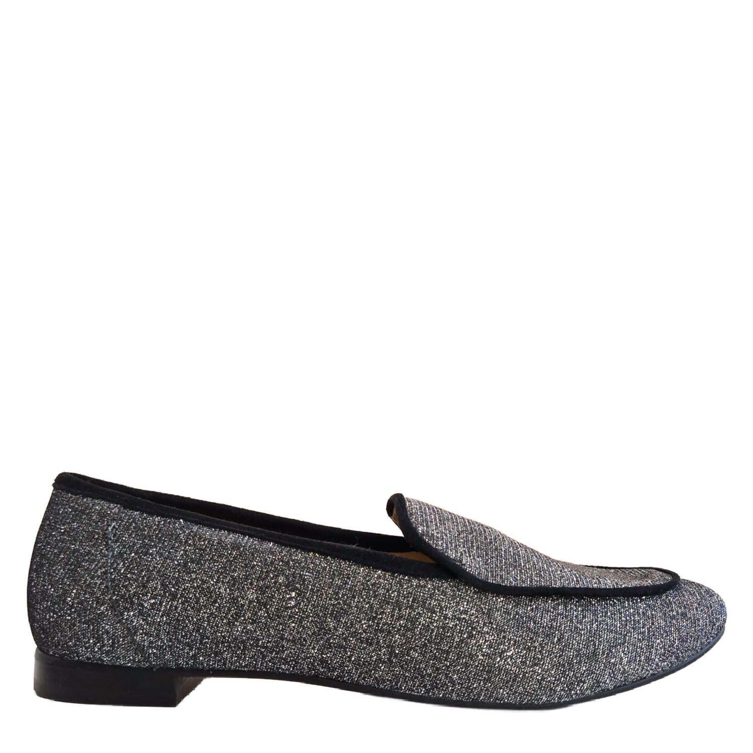 A classic loafer that is both comfortable and polished. Shine bright with the Women's Galaxia Pewter Glitter Loafers by Lalisa, perfect for adding a touch of sparkle to any ensemble. These gray loafers feature a flat heel and a round-toe shape, complemented by black trim for a refined edge. Ideal for spring dinner parties and holiday celebrations, they effortlessly embody a minimalist trend. Step out in style with these versatile flats, designed for comfort and chic appeal.