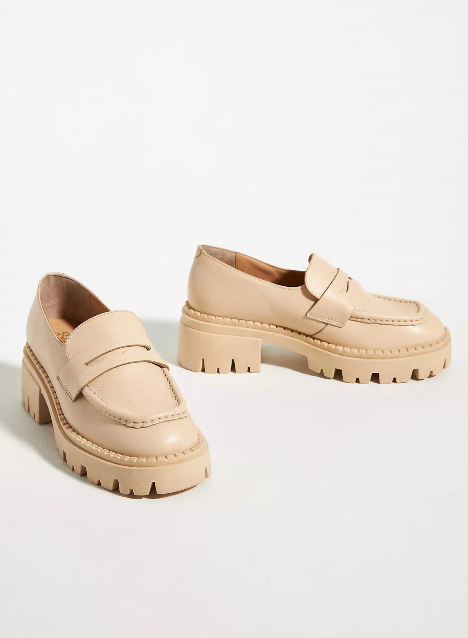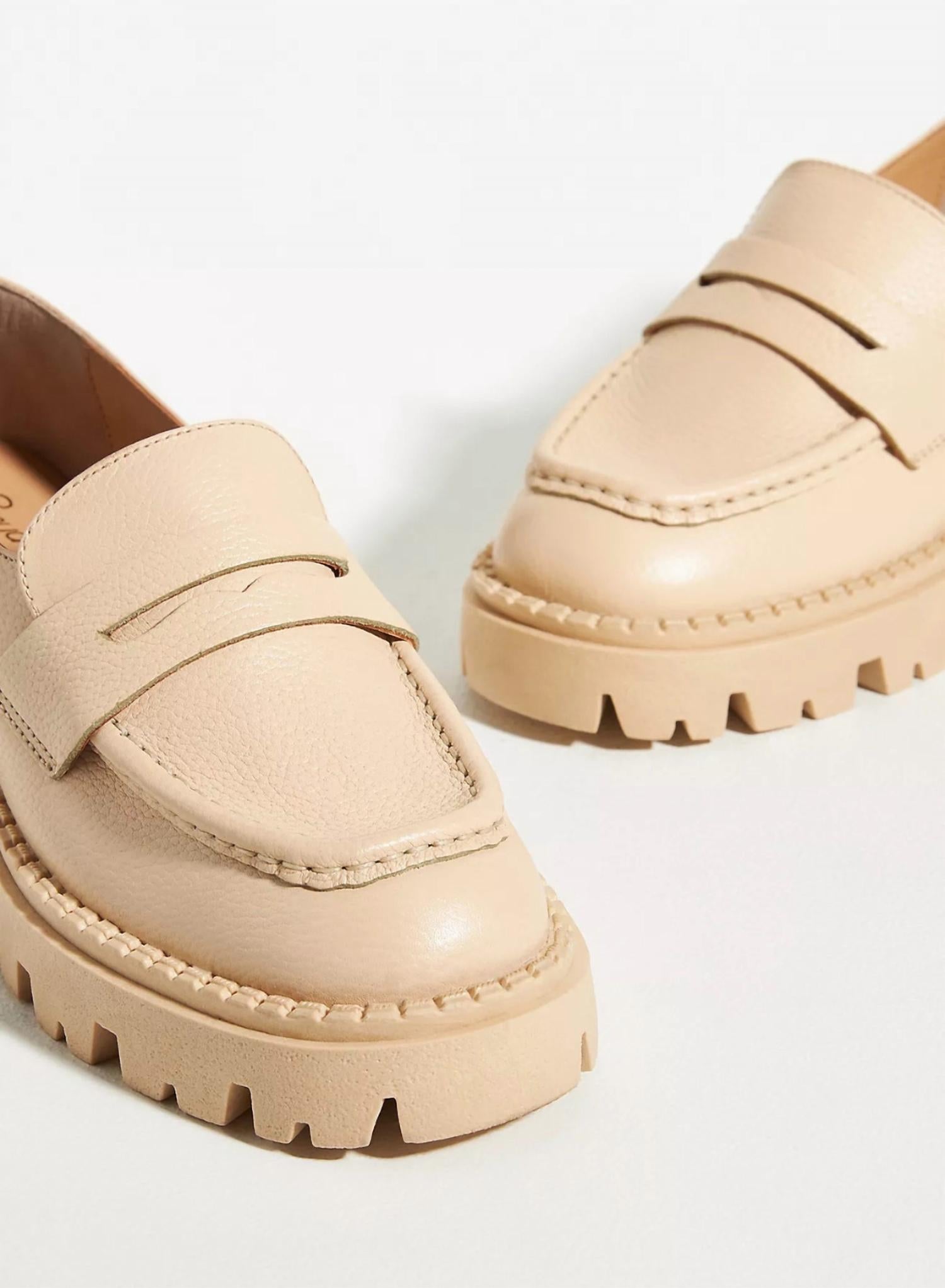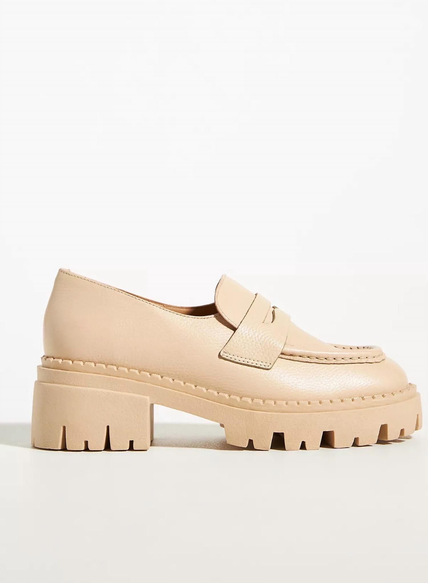 A classic loafer that is both comfortable and polished. Step into style with the Women's Meridian Loafer by Seychelles, offering a fresh take on classic penny loafers. Crafted from rich pebbled leather with a monochromatic ivory finish, these slip-on loafers boast a dramatic lug outsole that perfectly balances old school and new school aesthetics. Featuring a chunky heel height of 2.25 inches and a 1.25-inch platform, these loafers offer a true-to-size fit and a round toe shape for day-long comfort. Made for the modern woman, they're both stylish and durable.