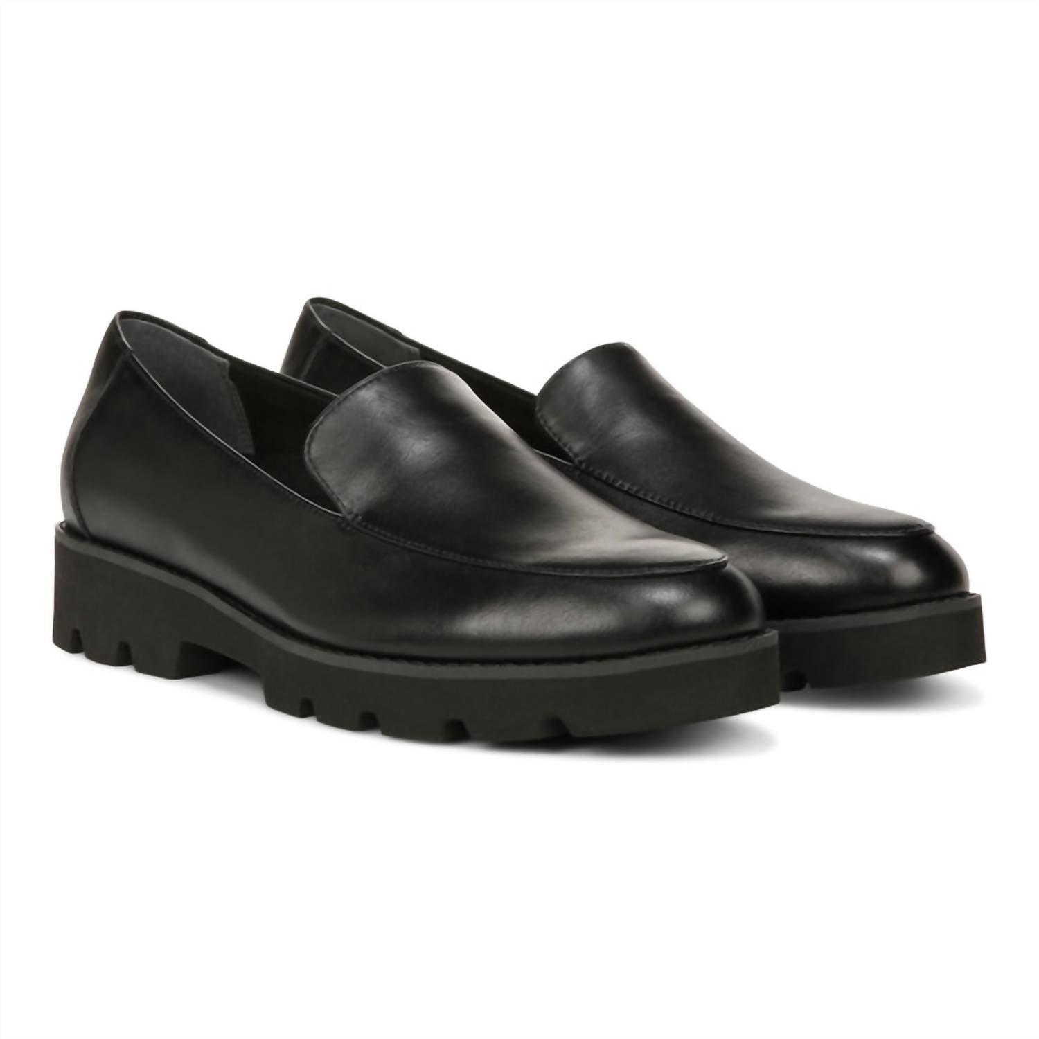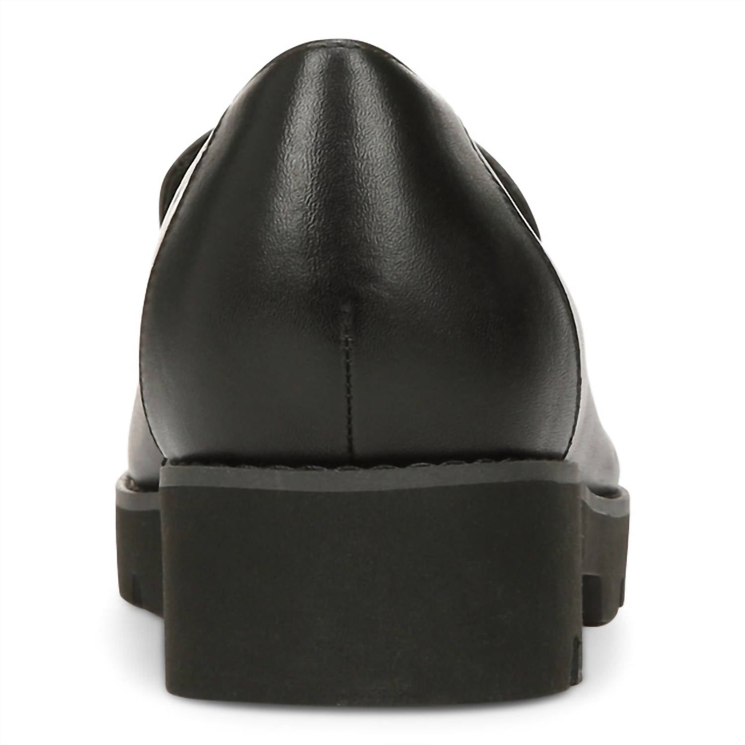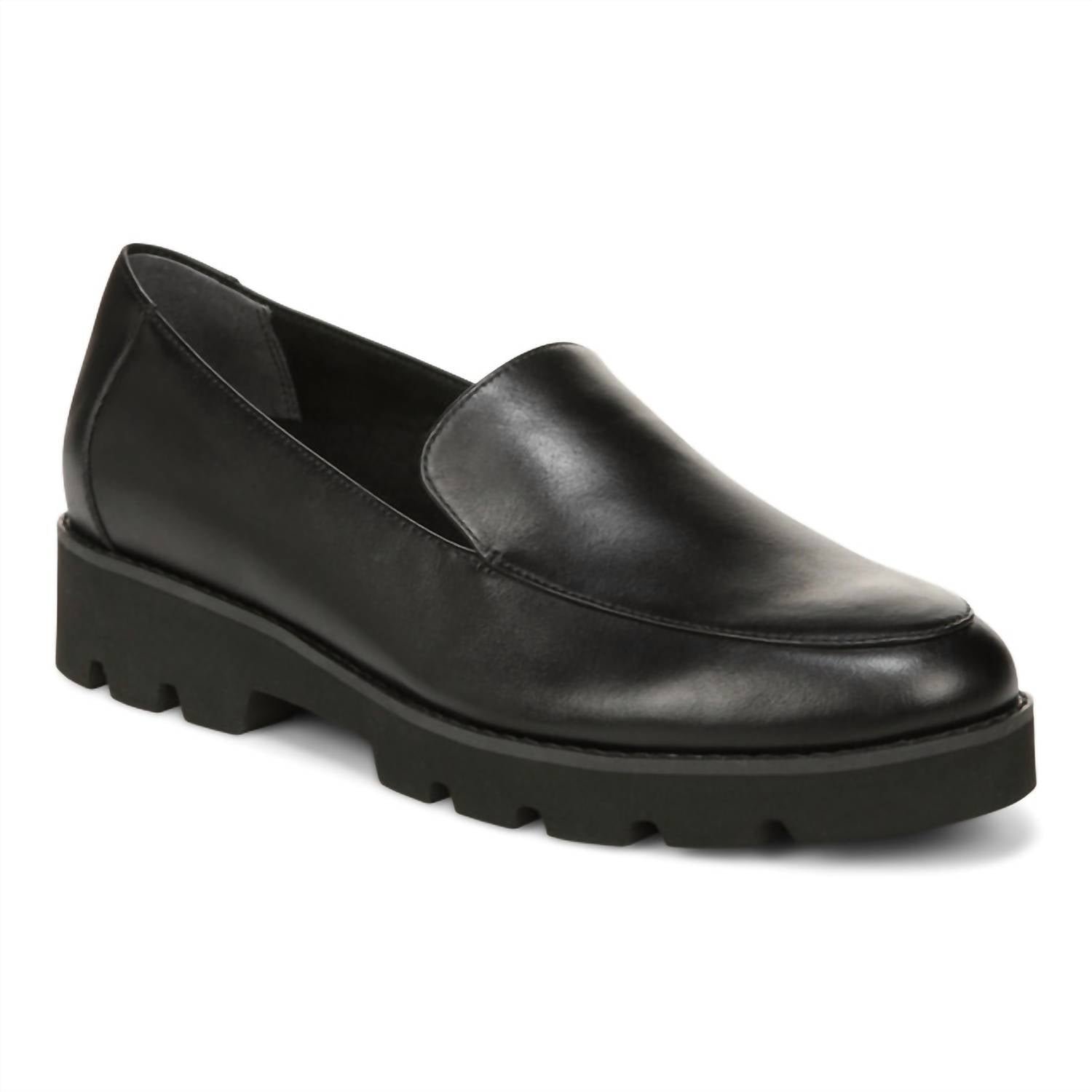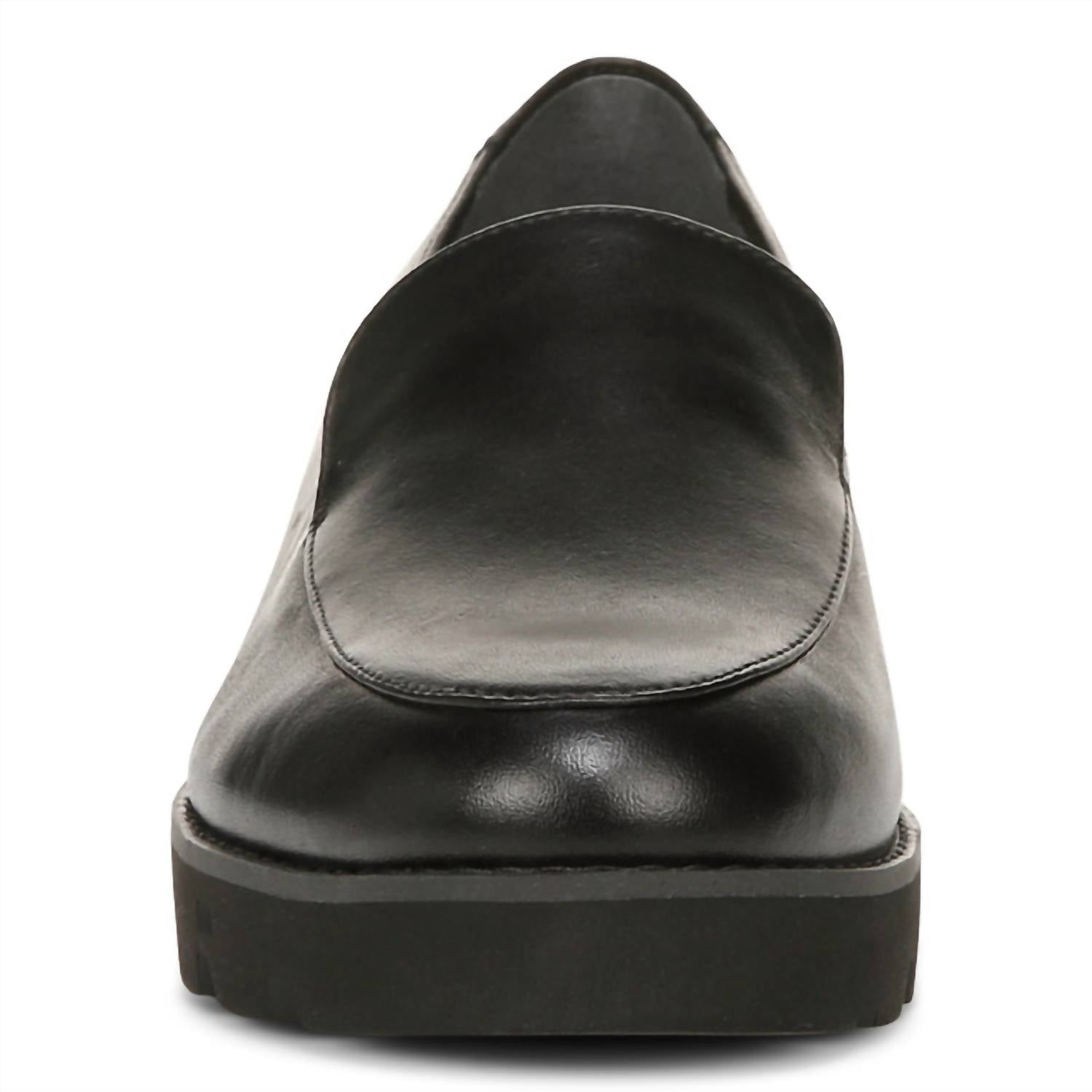A preppy yet feminine take on the classic loafer. Step into elegance with the Women's Kensley Loafer by VIONIC, a chic addition to any wardrobe in sleek Black Nappa. The loafers feature a distinctive upper made from crinkle patent leather, offering a luxe texture and style. They come with a removable PU-covered EVA footbed for customizable comfort on a durable rubber outsole. The platform height is 0.70 inches, complemented by a heel measuring 1.30 inches for added elevation.