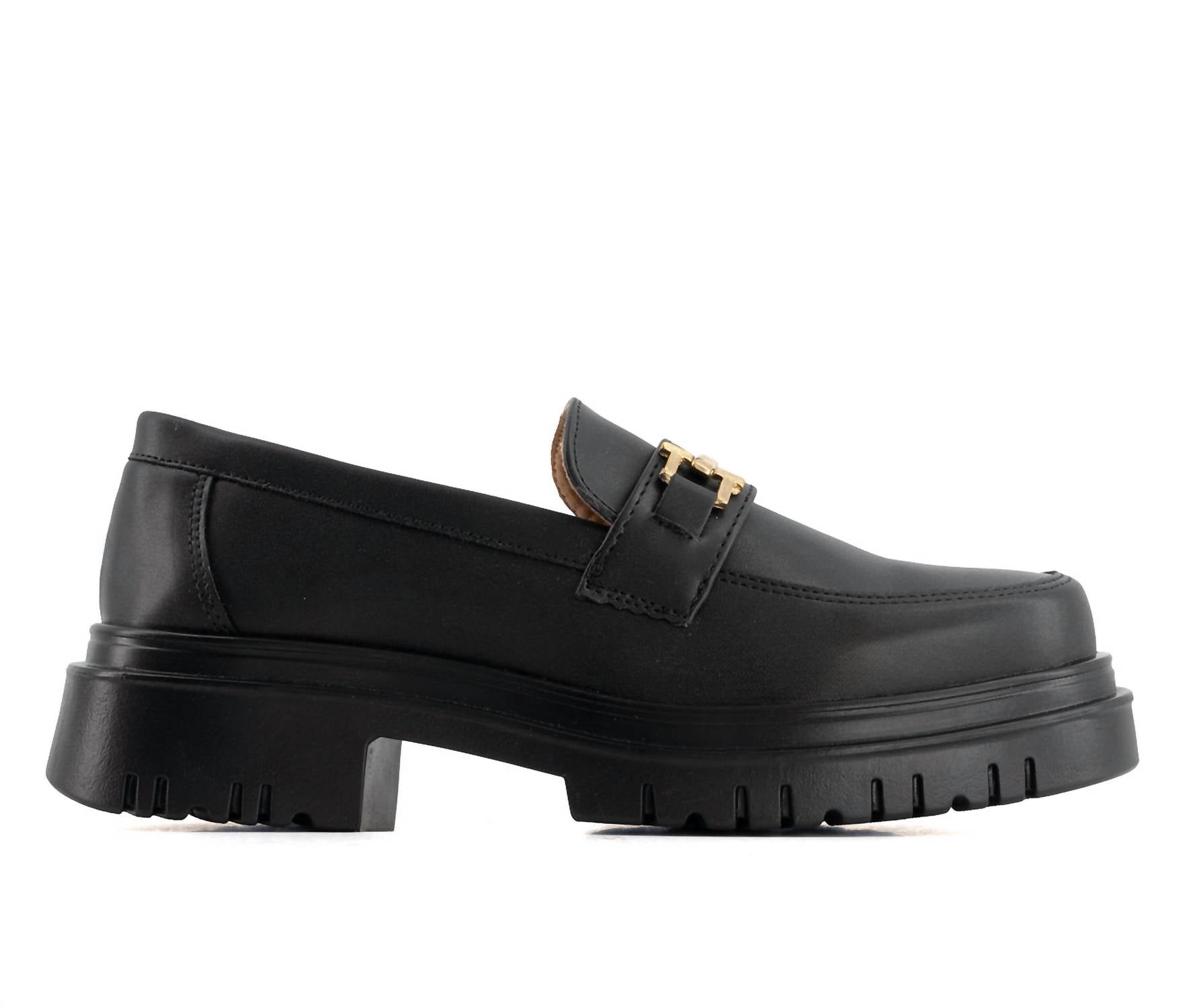 Andrea - Women's Black Penny Loafers With Golden Ornament