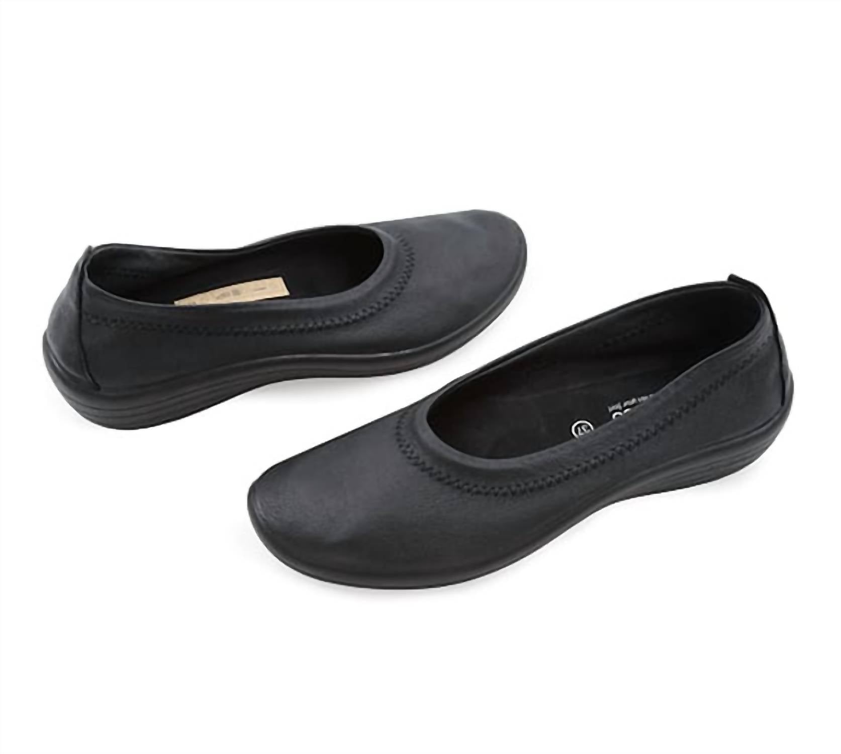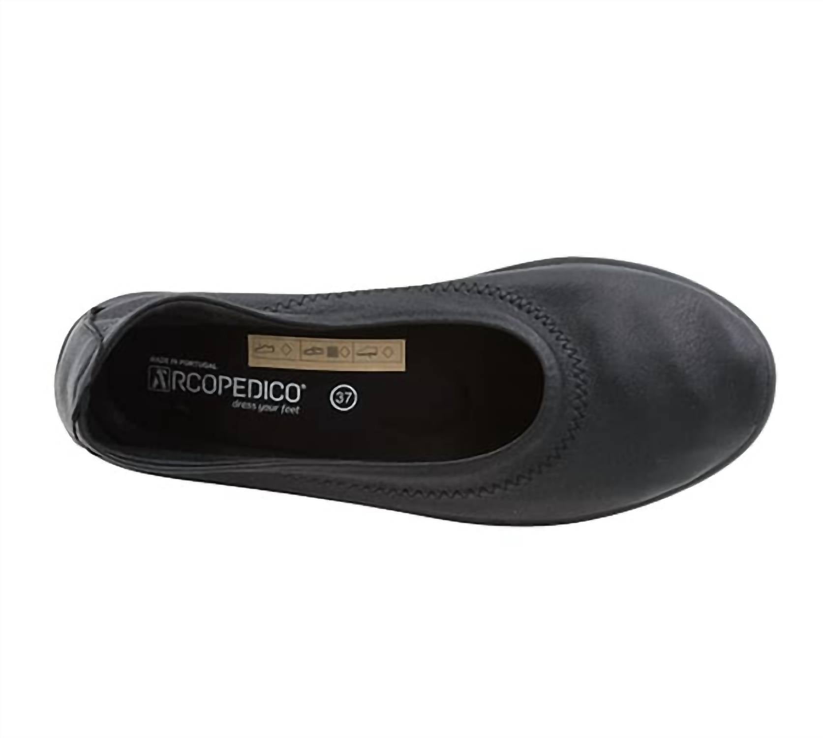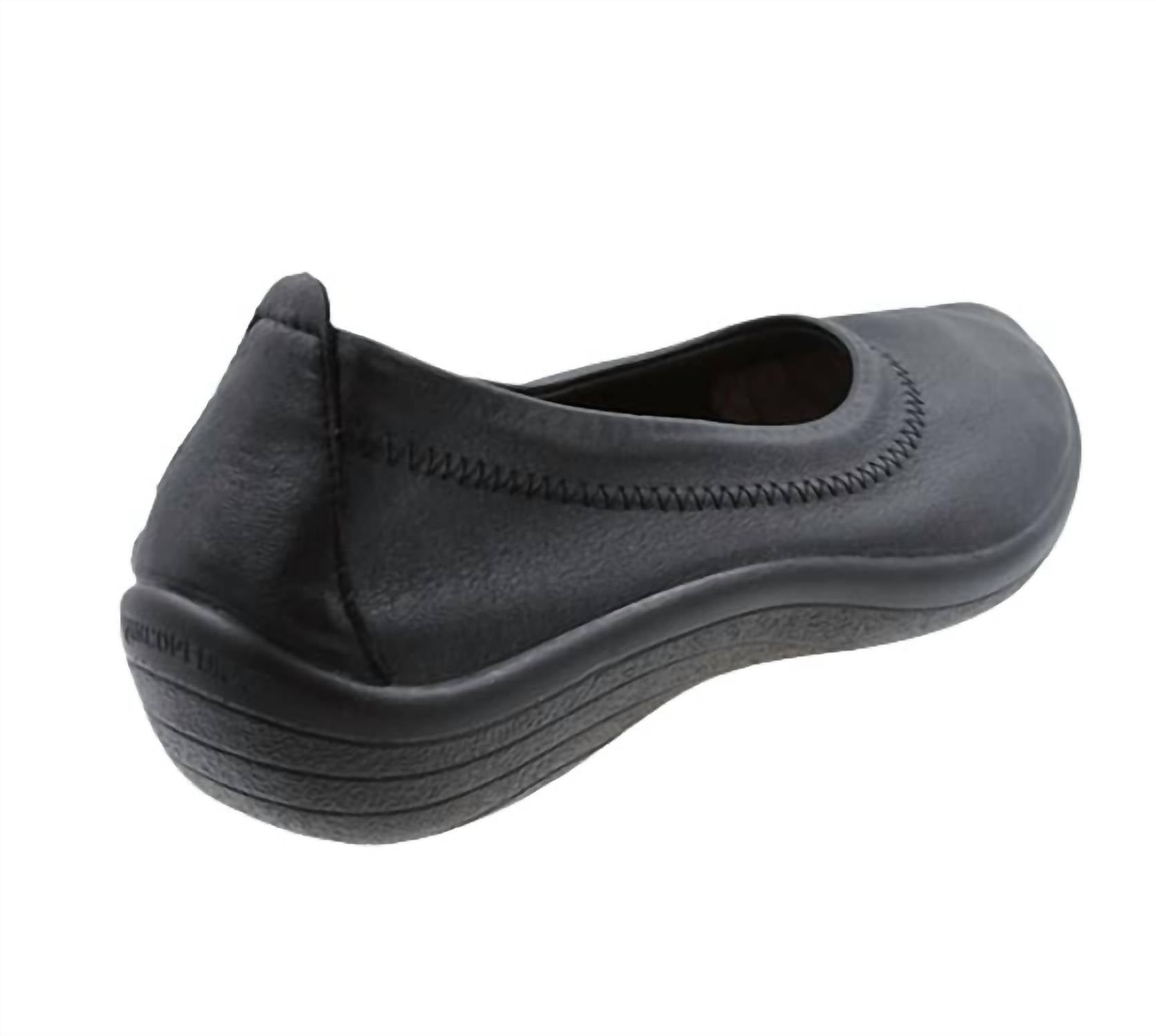 Discover the Women's Guaja Shoes by ARCOPEDICO, a versatile choice for any traveler. Crafted with a recycled Lytech upper, these flats are designed for easy slip-on and slip-off convenience. Their lightweight and slim profile makes them perfect for transitions from TSA security lines straight to dinner. Featuring a round toe shape and medium width, these shoes come in the sophisticated Gin Black color.