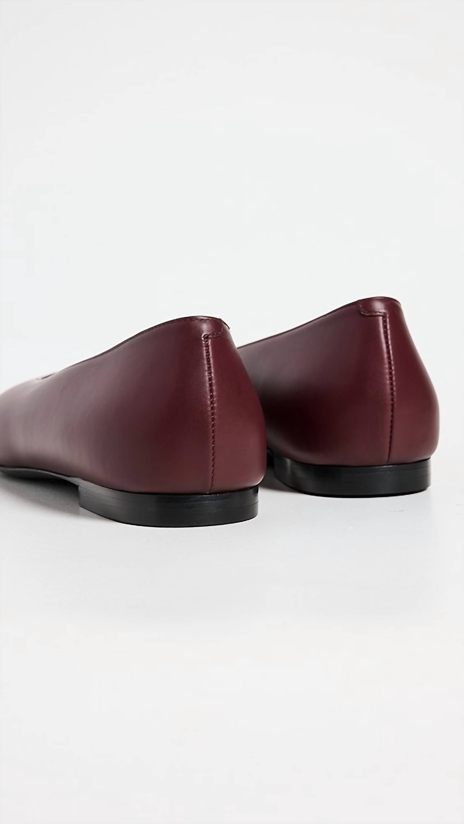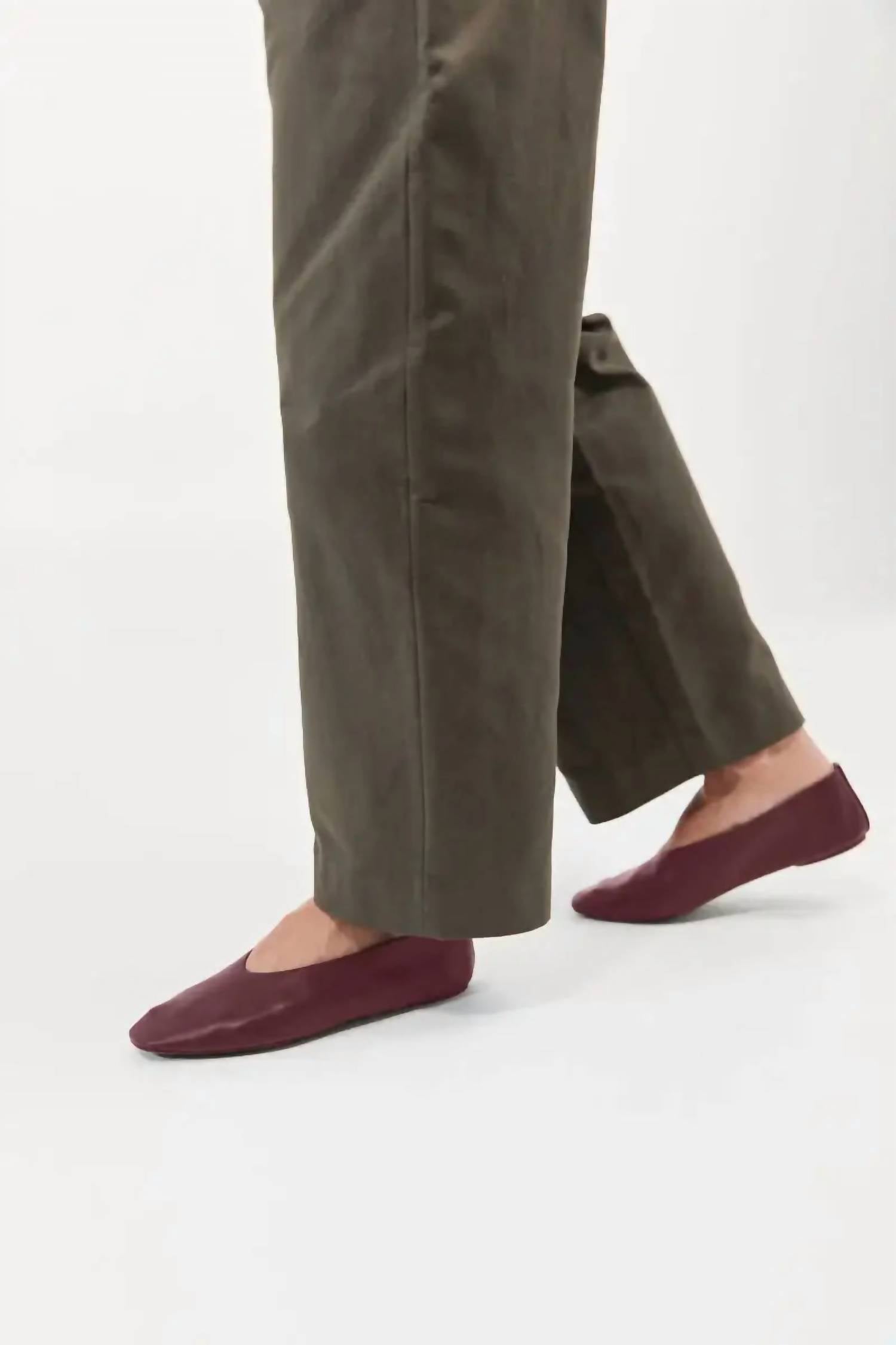 A classic loafer that is both comfortable and polished. Step into elegance with the Women's Soft Glove Ballet Flat by St. Agni, a perfect blend of sophistication and comfort. This plum-colored flat features a glove-like lambskin upper that molds beautifully to your foot, complemented by a slightly padded insole for all-day ease. It showcases a refined squared toe and a flat heel, providing both style and practicality ideal for a minimalist look. Expertly crafted and responsibly made in China, this shoe adheres to the highest quality standards with a 100% lambskin insole and a 100% bovine leather outsole.