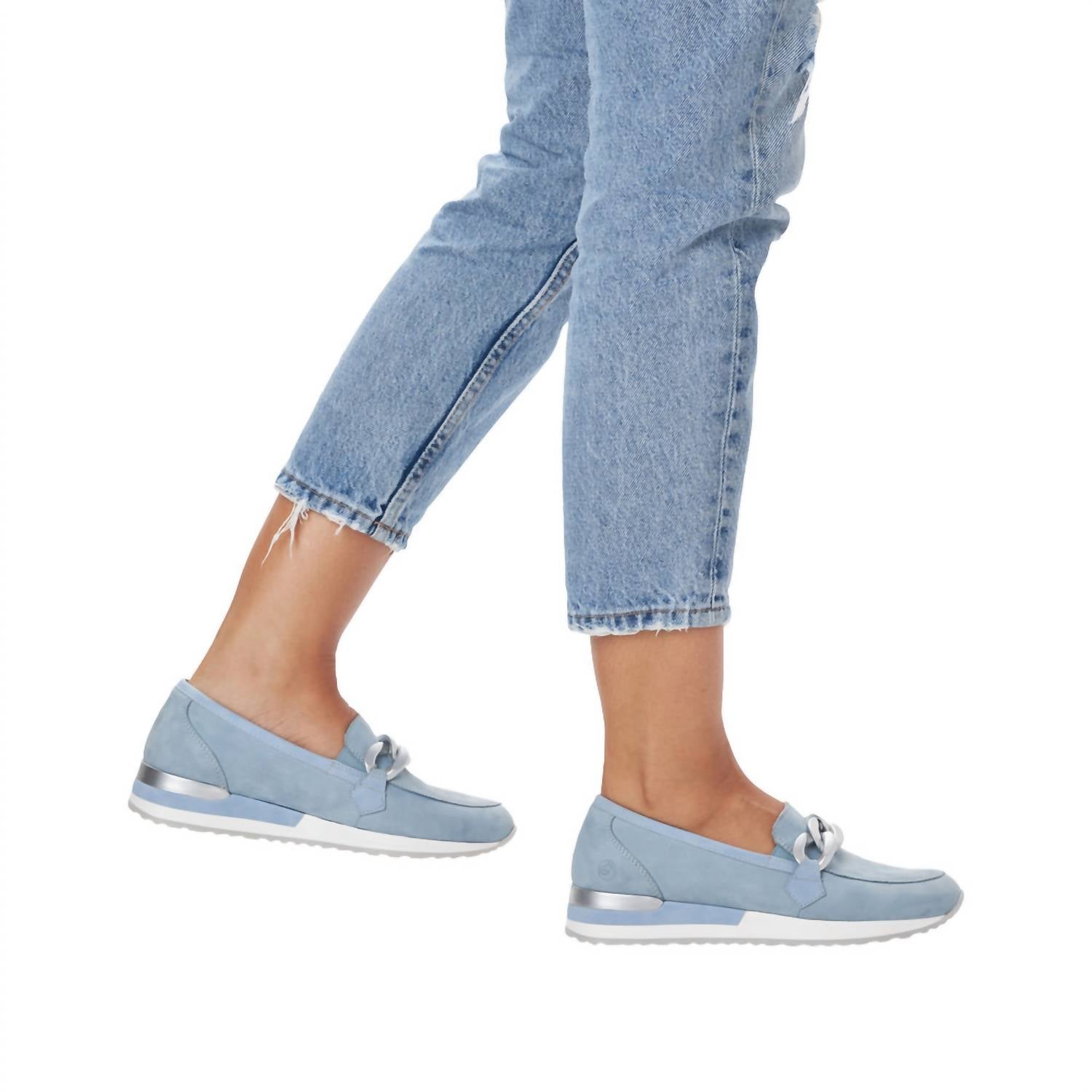 A preppy yet feminine take on the classic loafer. Introducing the Elmira 44 Loafers by Remonte, a blend of elegance and comfort crafted from suede leather in a charming hue. These slip-on loafers are designed for convenience with an almond toe shape and a low 1.4" wedge heel. The removable footbed and lightweight micro suede lining ensure your feet stay cushioned and comfortable throughout the day. The thermoplastic elastomer sole provides flexibility, making these loafers a practical addition to any wardrobe.