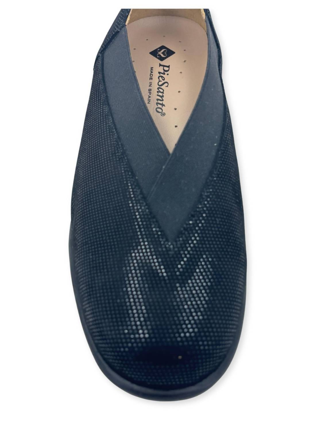 A preppy yet feminine take on the classic loafer. The Nicole women's slip-on shoes by PieSanto, crafted in Spain, feature soft shimmering suede with elastic at the throat for a secure fit. Leather-lined with a removable cushioned insole for added comfort, they also include an "antishock" synthetic outsole. With a 1.5-inch heel and 0.5-inch platform, these shoes combine style and support for all-day wear.