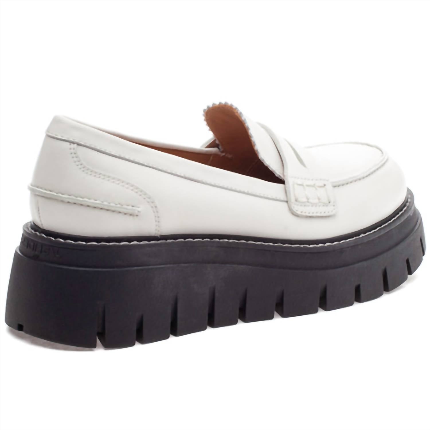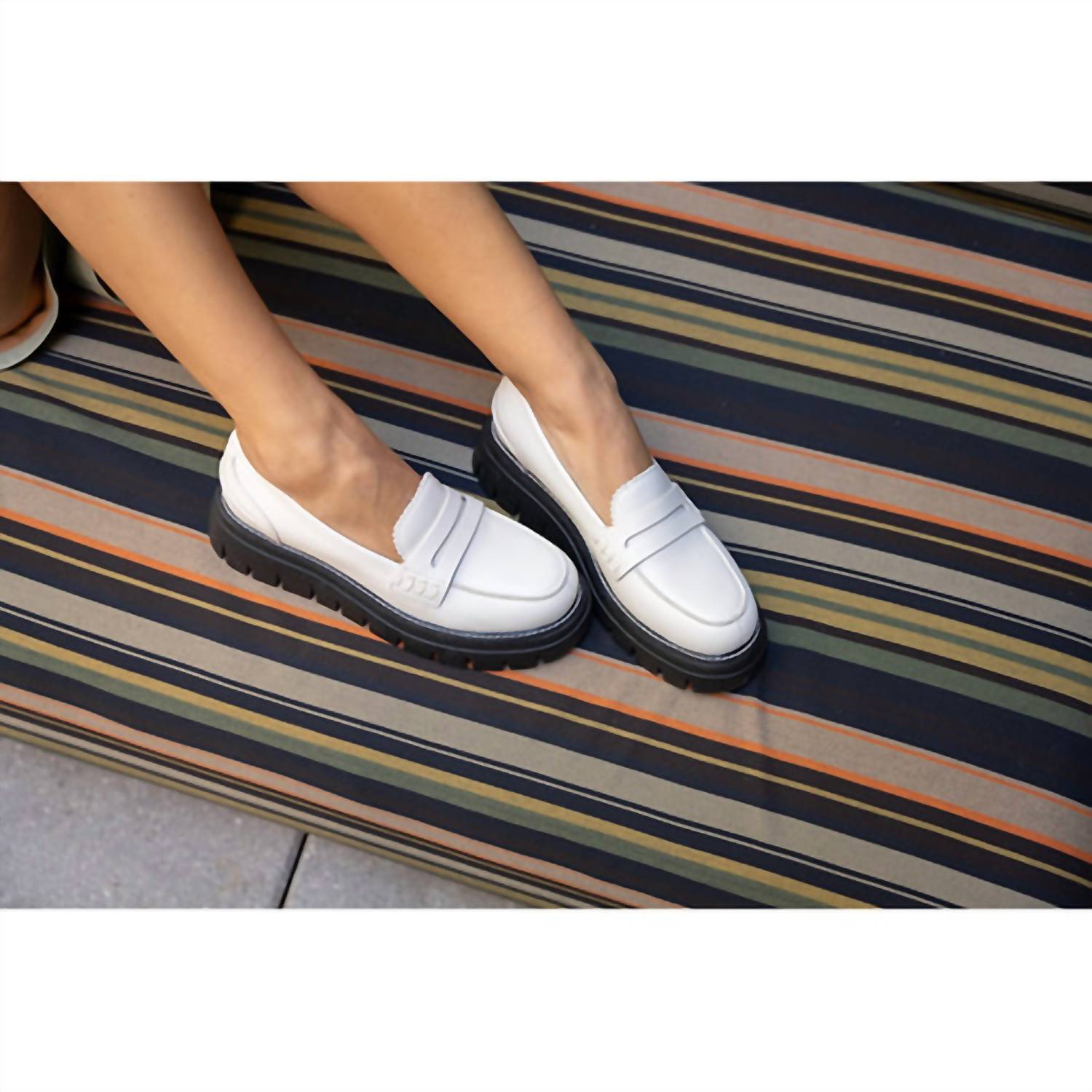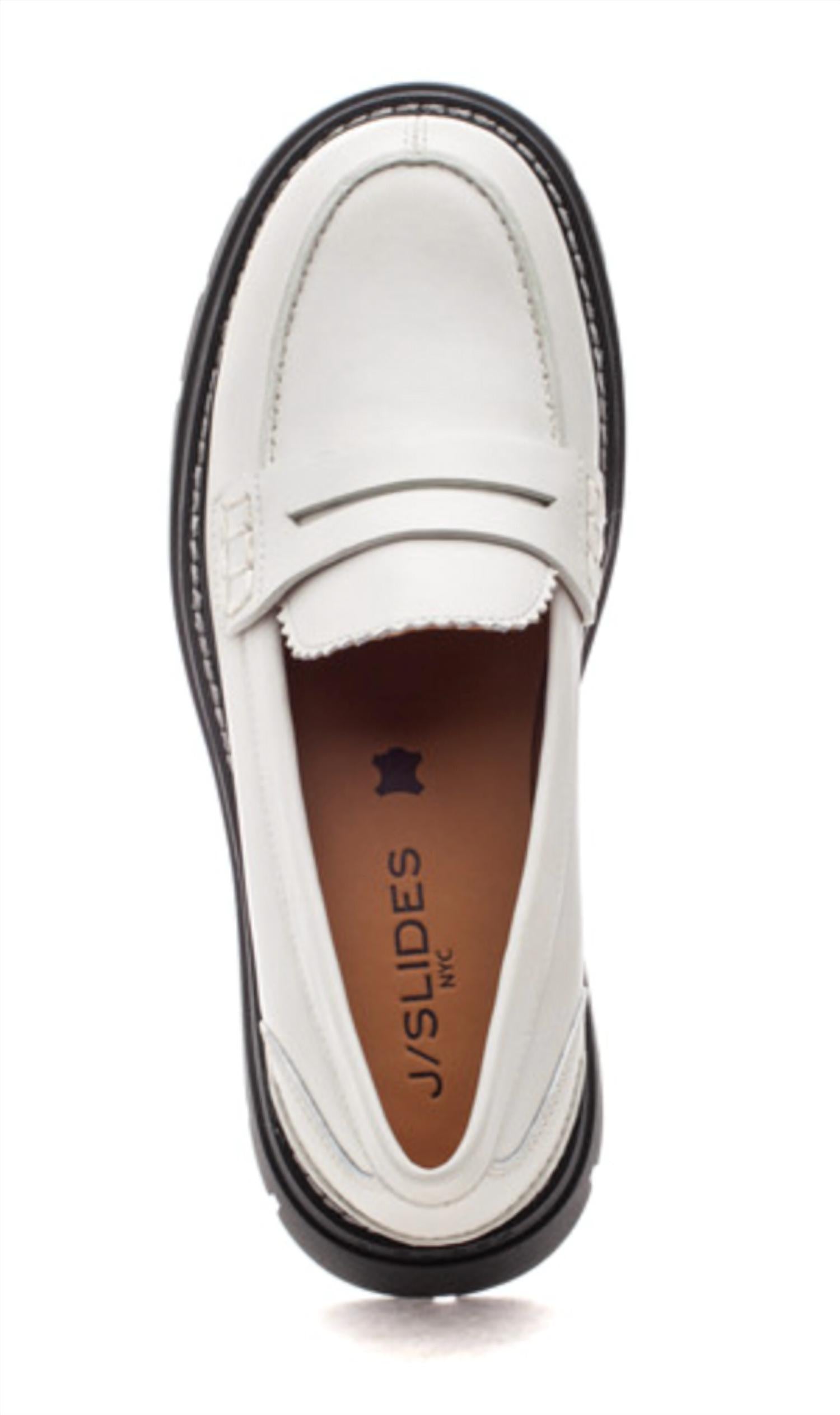 A preppy yet feminine take on the classic loafer. Introducing the Women's Tyler Leather Loafers by J/SLIDES, an elegant addition to your wardrobe with sophisticated contrast stitching. Crafted with a premium leather upper, lining, and cushioned footbed, this loafer promises both style and comfort. It features a utilitarian rubber lug sole and a chic 1.75" platform heel, perfect for elevating any look. The loafers are imported and advised to order a half size down for the best fit.