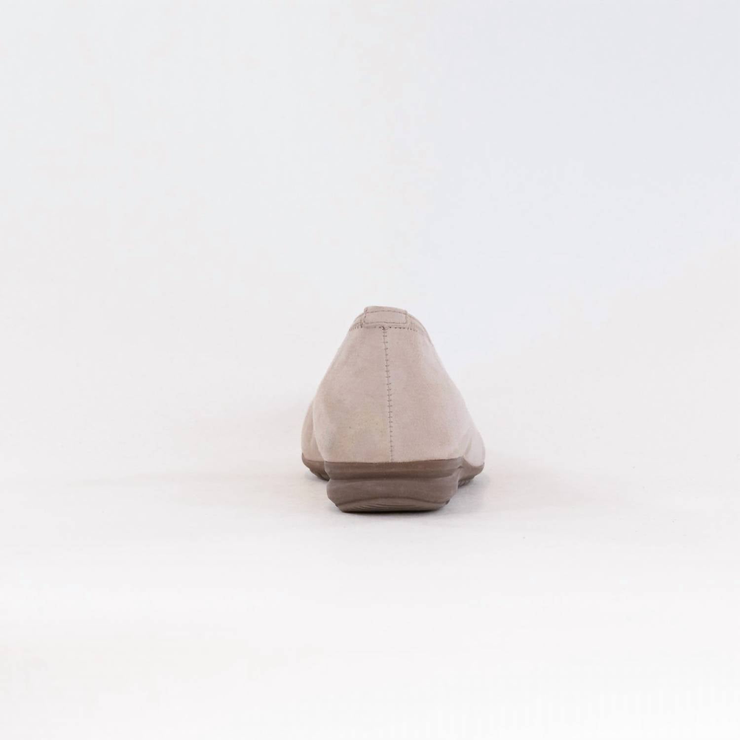 A classic loafer that is both comfortable and polished. Step into elegance with the GABOR Women's Sandal in Metal Pewter, featuring a chic suede and leather upper. This ballet flat combines casual flair with comfort, thanks to its elasticized topline and soft leather lining that ensures durability. Benefit from its arch support and cushioned rubber sole, perfect for an evening event or adding a vintage touch to your spring wardrobe. It is designed with a round toe and a flat heel, measuring under 1 inch, to offer style and ease for every occasion.