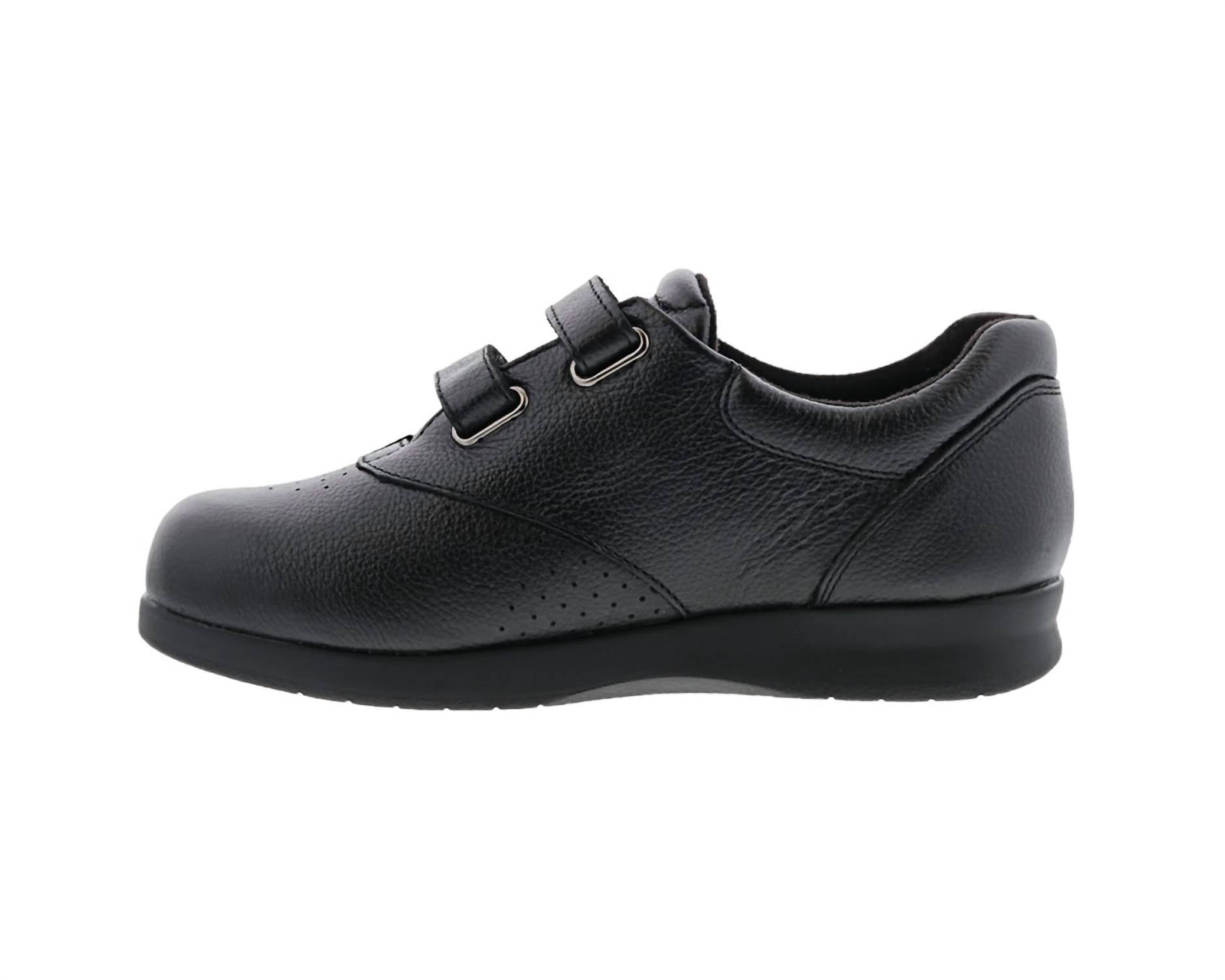 Loafers so versatile you can wear them with just about anything. The Women's Paradise 2 Shoes by DREW offer unparalleled support and comfort for the modern woman, ideal for both travel and everyday streetwear. Made from quality leather in a sleek black hue, these casual flats feature a round toe and a flat heel height of 1" or under for ease of wear. Two adjustable straps ensure a customized fit, and multiple therapeutic elements like double-added depth, heel counters, and steel shanks enhance foot health. Perfect for women seeking practical yet stylish footwear options.