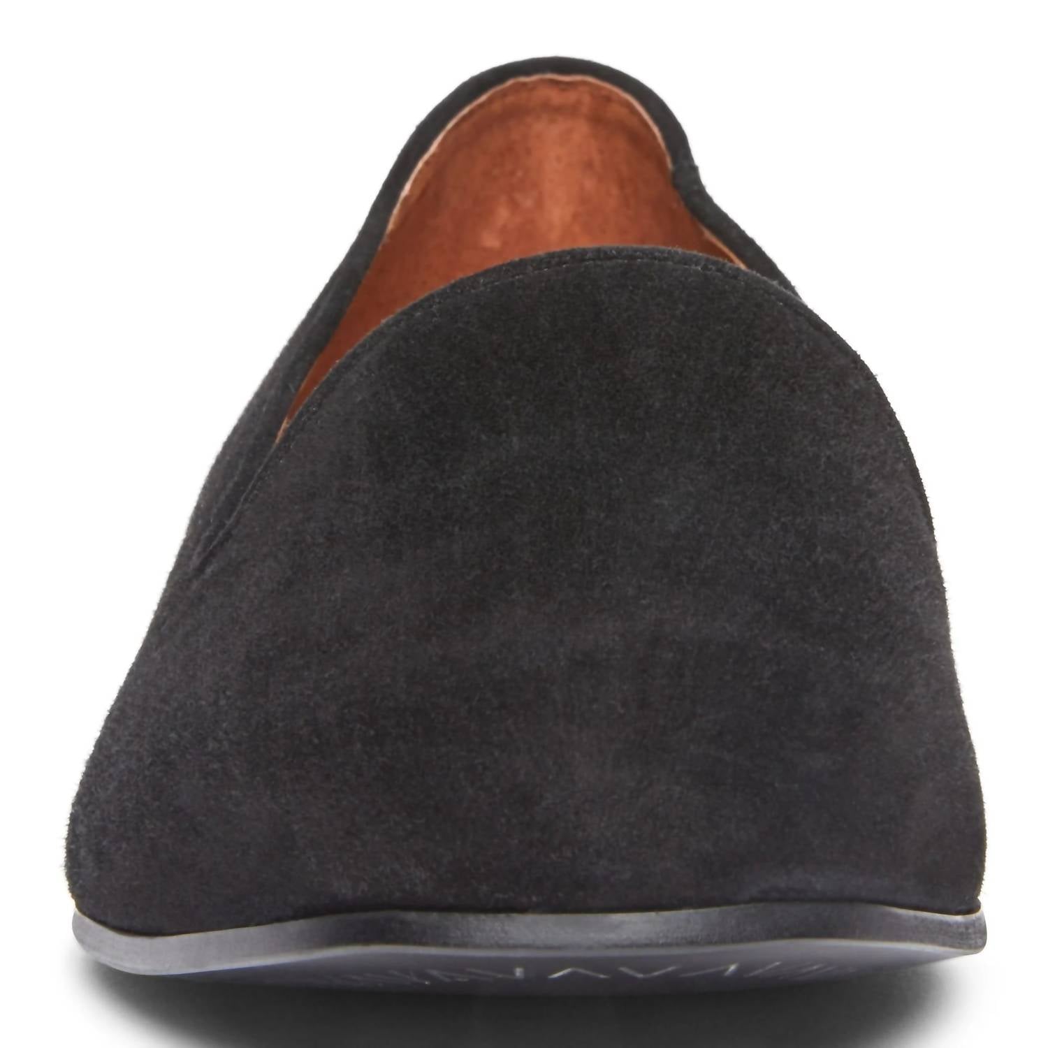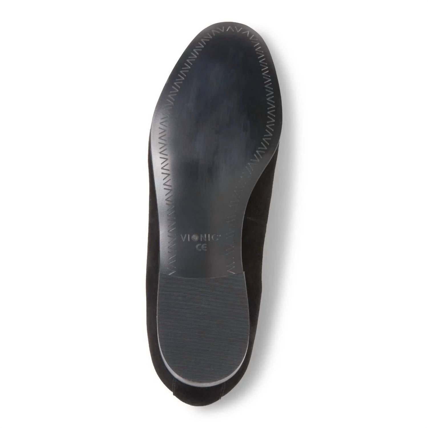 Loafers so versatile you can wear them with just about anything. Step into elegance with the Vionic Women's Willa Slip-On Flat in Black Suede, a chic choice for seamless transitions from desk to dinner. The luxurious suede upper is complemented by a durable rubber outsole, with a heel height of just 0.57 inches, perfect for all-day comfort. Featuring Vio-Motion Technology, these flats provide exceptional arch support via a removable PU covered EVA footbed, ideal for those seeking relief from heel pain. Whether paired with work attire or evening wear, these minimalist flats deliver both style and comfort.