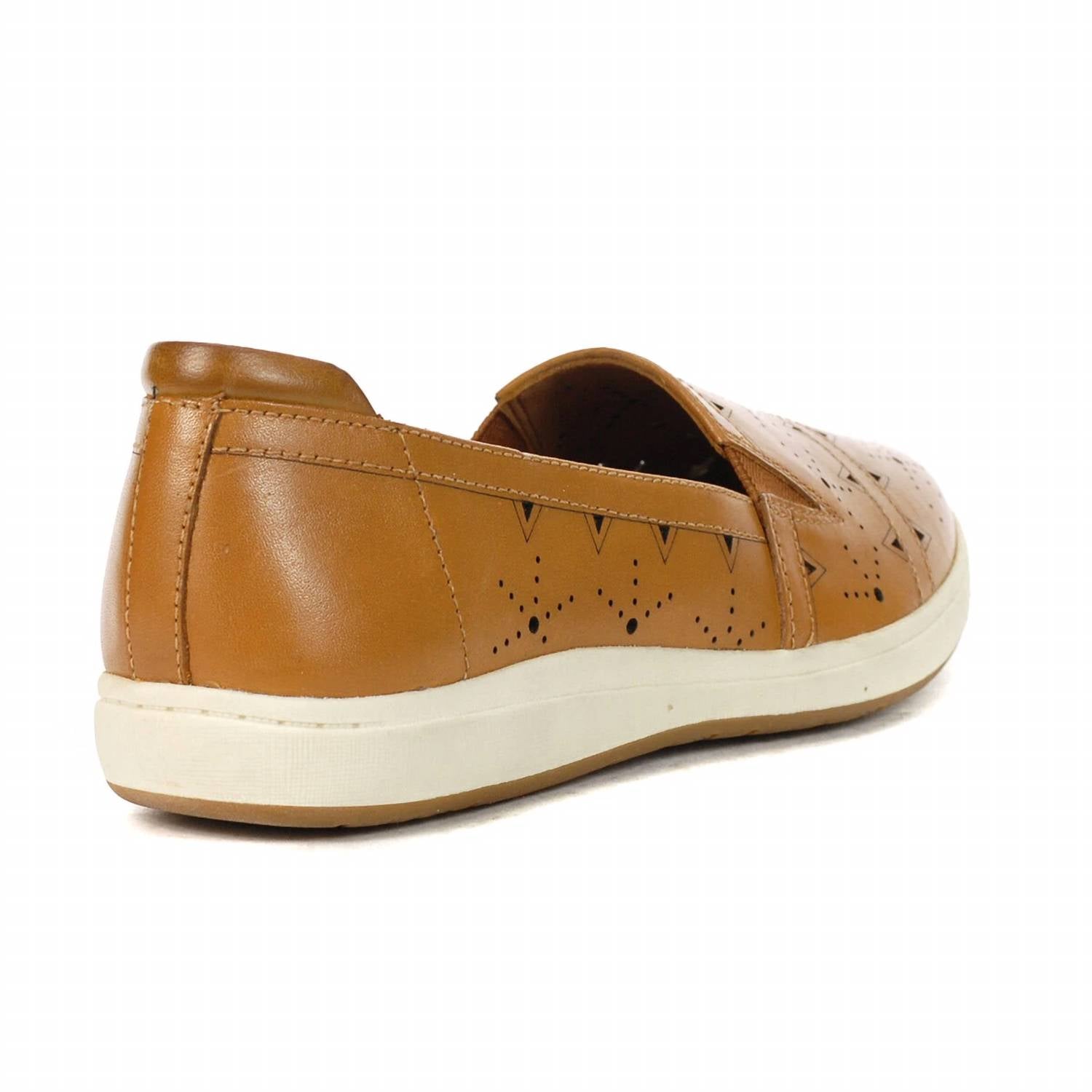 A classic loafer that is both comfortable and polished. Elevate your footwear collection with the Women's Bailee Slip On Shoes by ROCKPORT, ideal for adding a touch of sunshine to any outfit. These slip-ons, in a classic Honey hue, feature unique starburst accents and crafted stitching on soft, burnished leather. Designed for women, they provide all-day comfort with generous cushioning and arch support. The round toe shape ensures a comfortable fit, perfect for any casual stroll.
